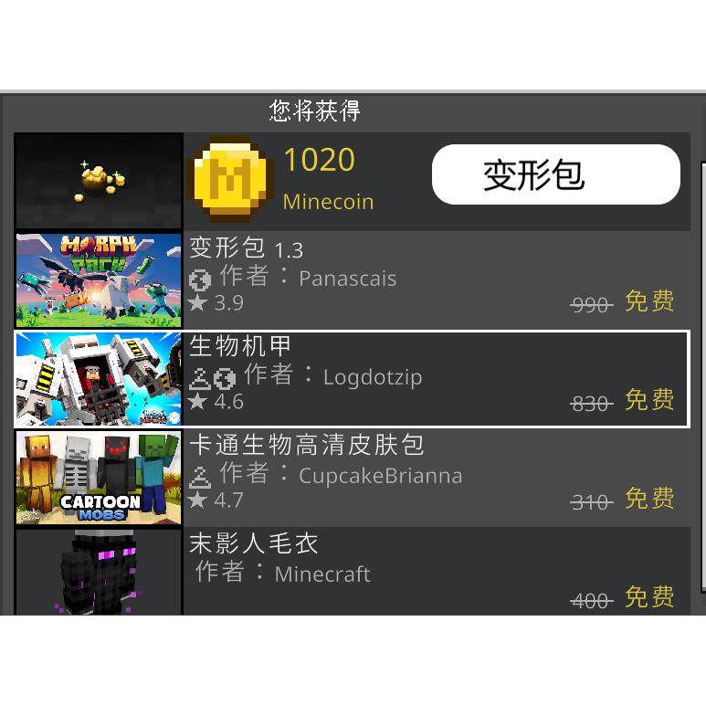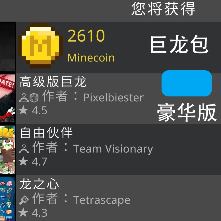 Minecraft 我的世界 硬币金币充值 MC国际服PC/手机/游戏主机通用
