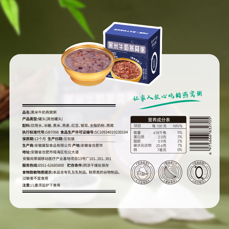 兴农嫂黑米牛奶燕窝粥碗装早餐粥鲜炖即食营养代餐速食粥老少皆宜