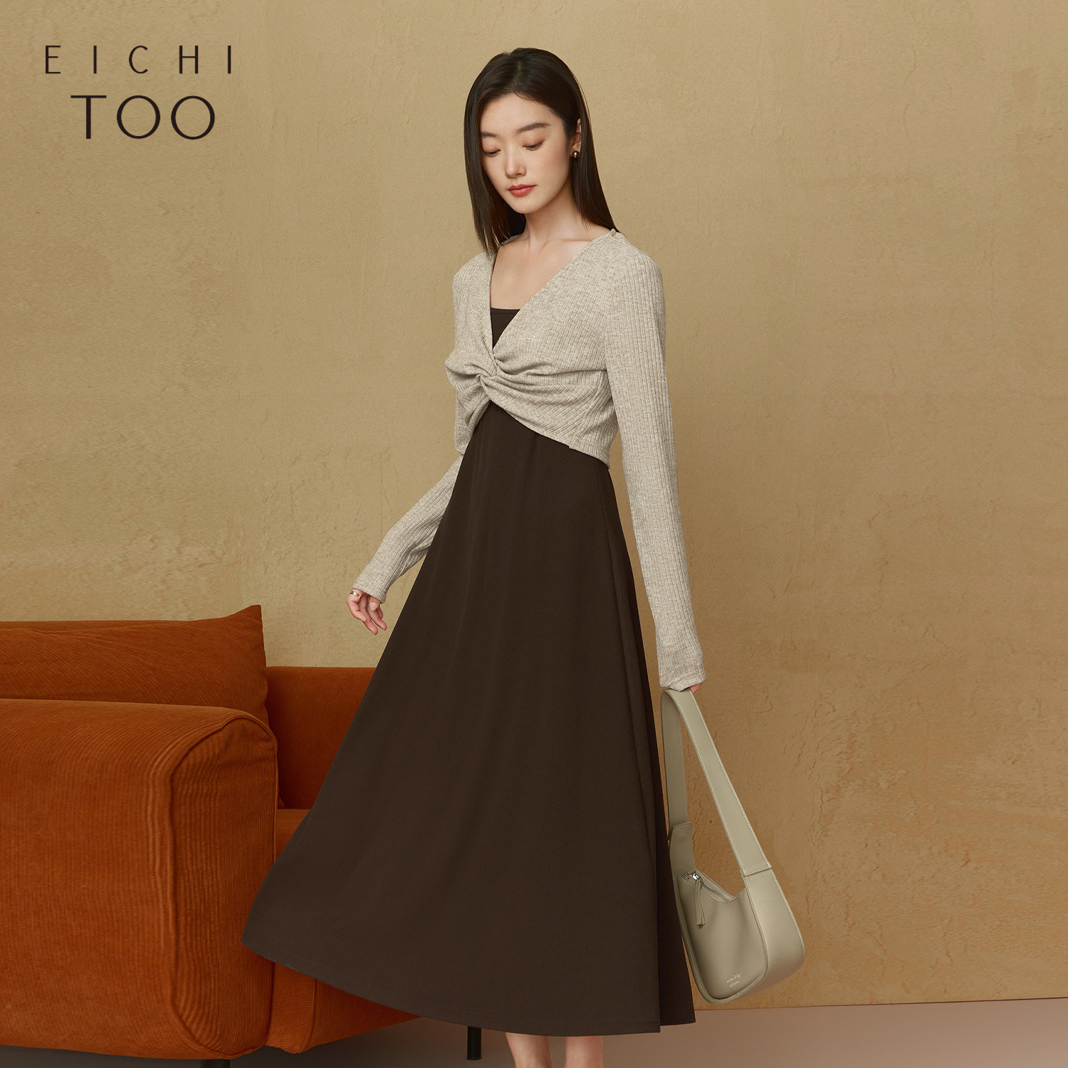 爱居兔针织吊带连衣裙两件套秋季新款法式设计感小众长裙子