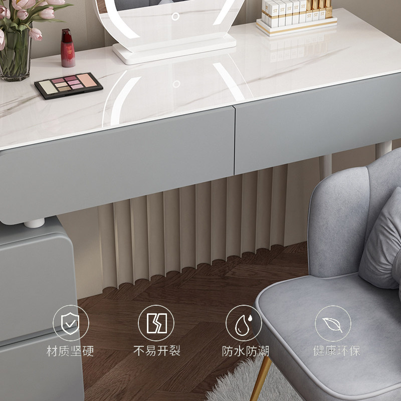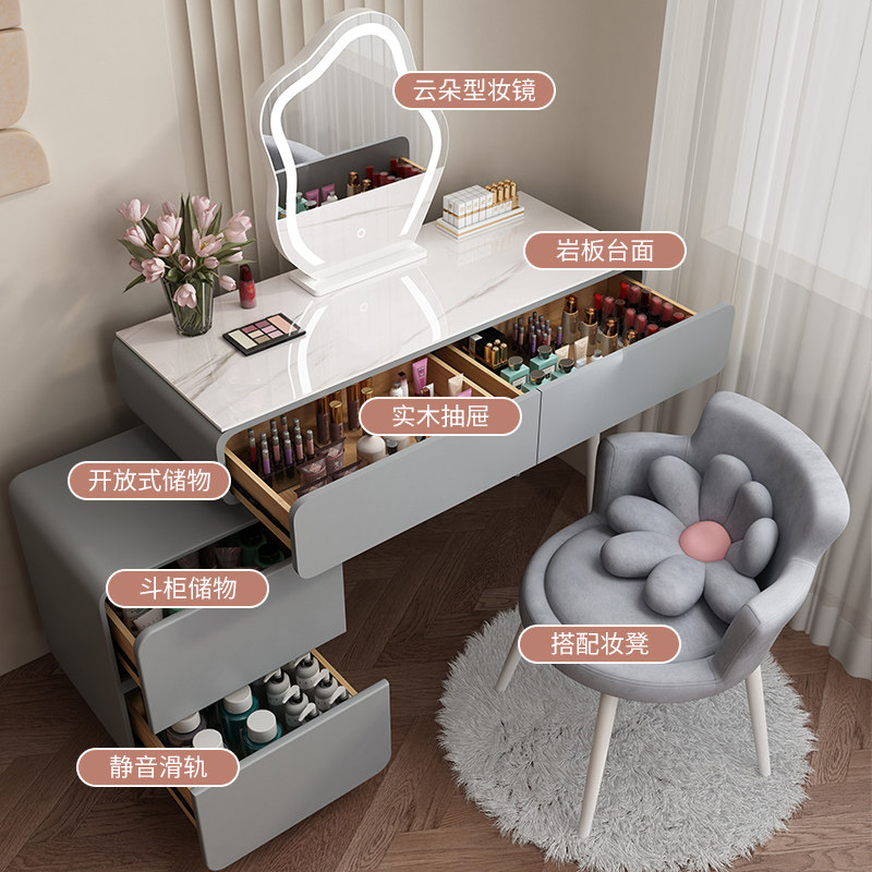 奶油风梳妆台岩板实木收纳网红化妆台卧室轻奢现代简约新款化妆桌
