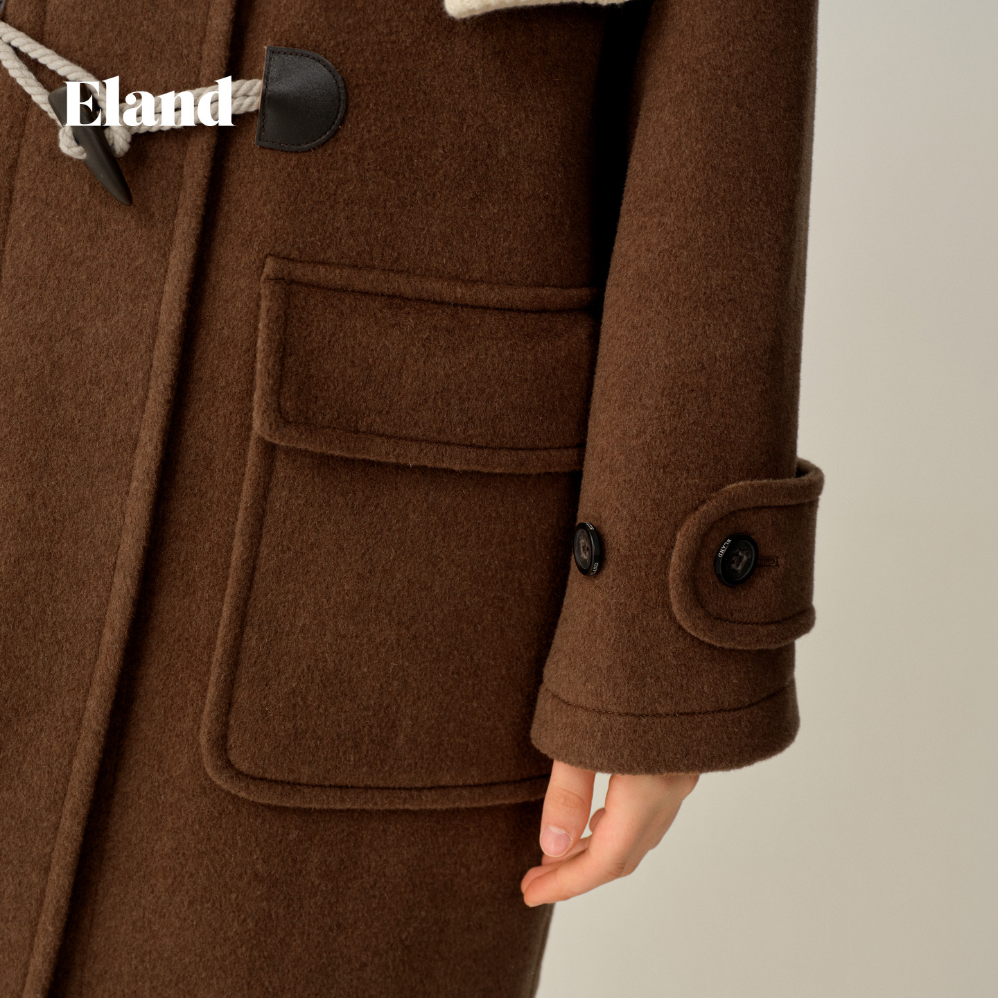 【经典长期主义】Eland衣恋毛呢外套女牛角扣羊毛大衣2025冬新款
