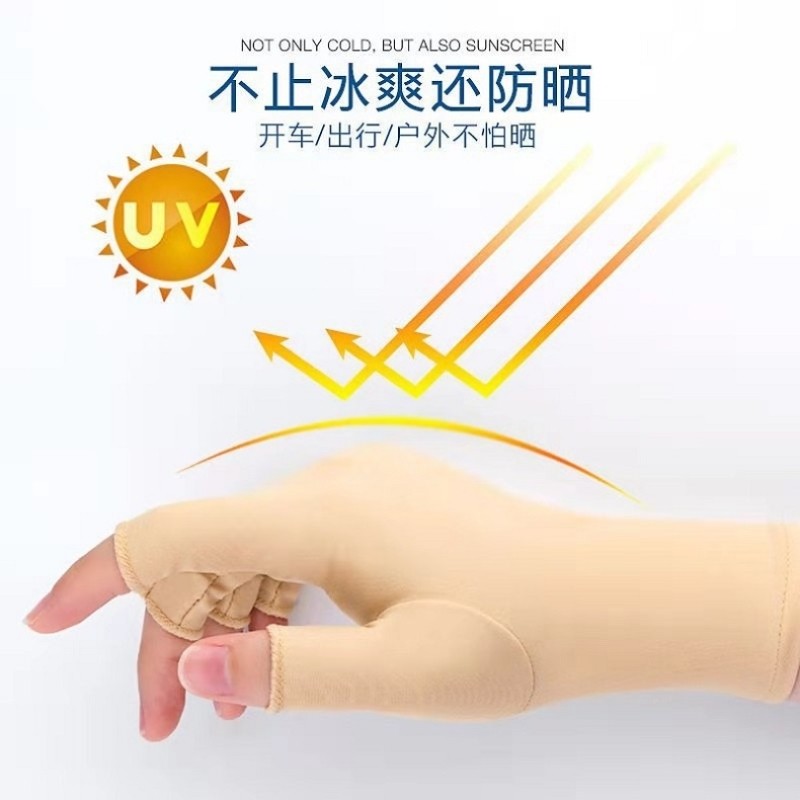 防晒手套美甲防紫外线防黑烤黑露指照灯做指甲半指户外开车黑色