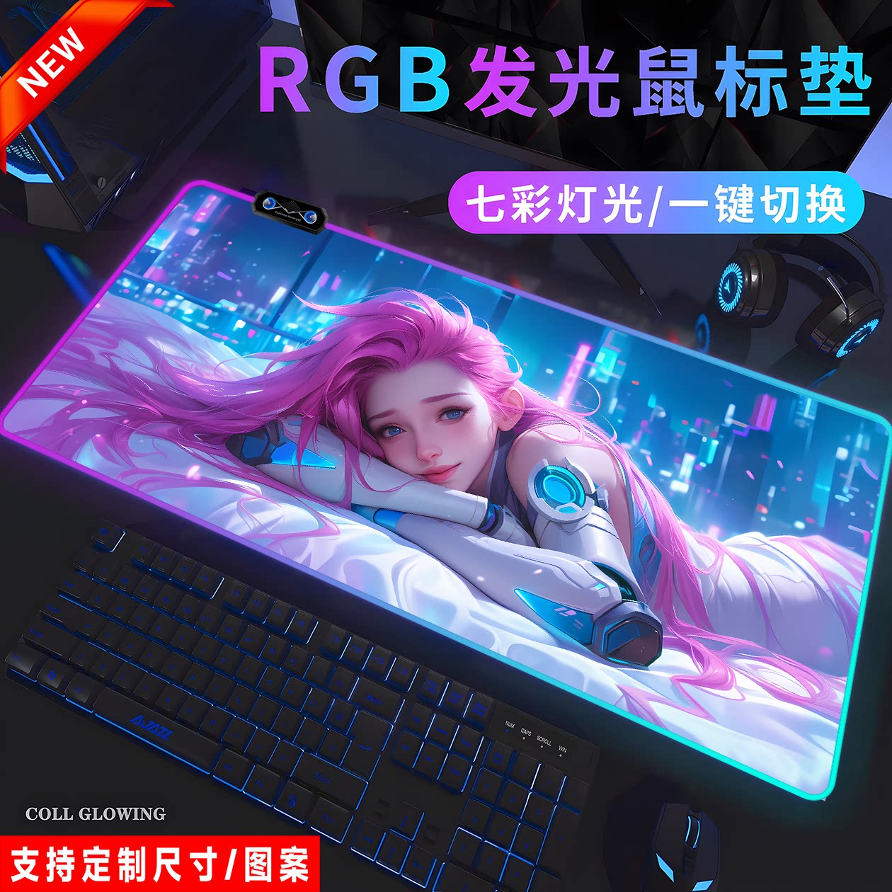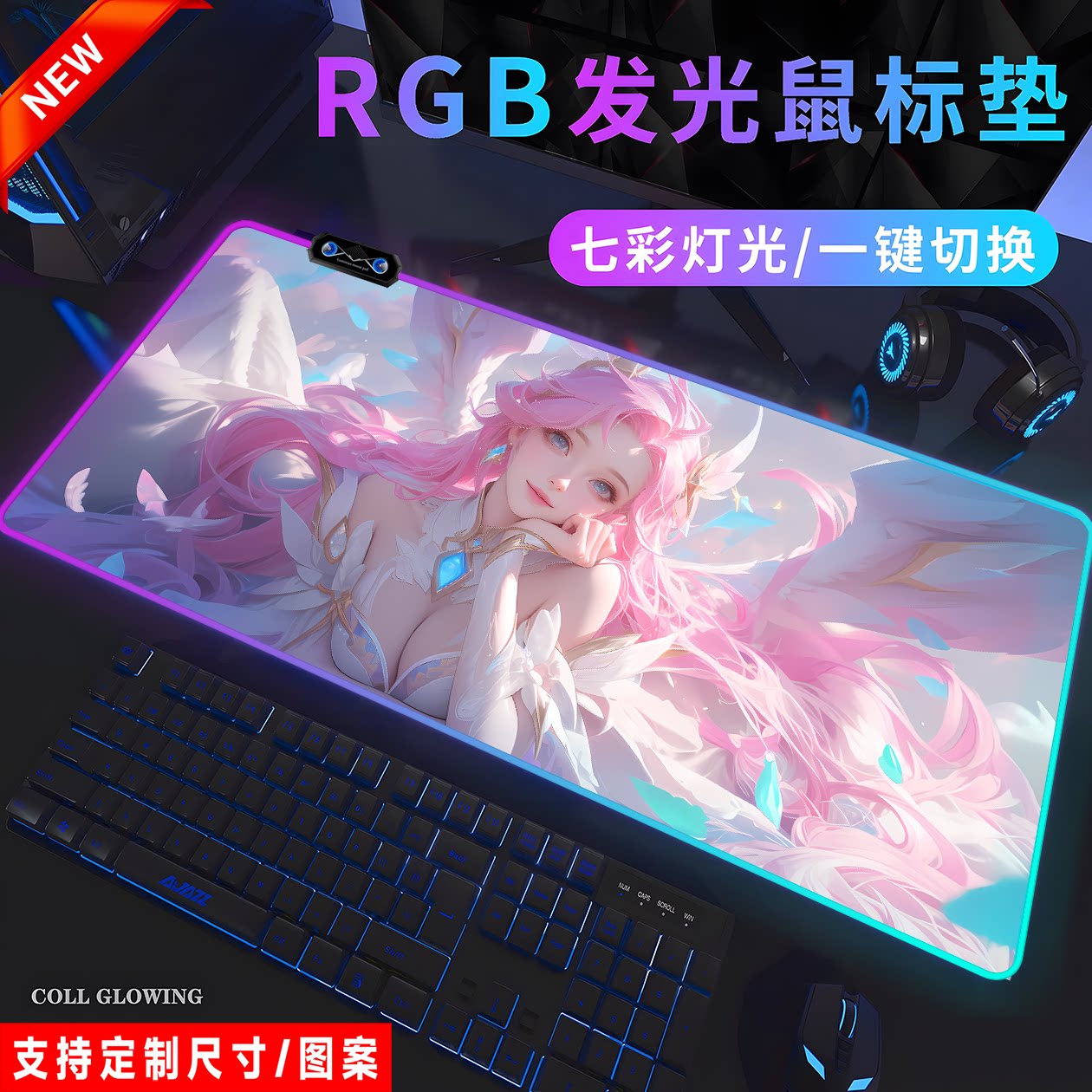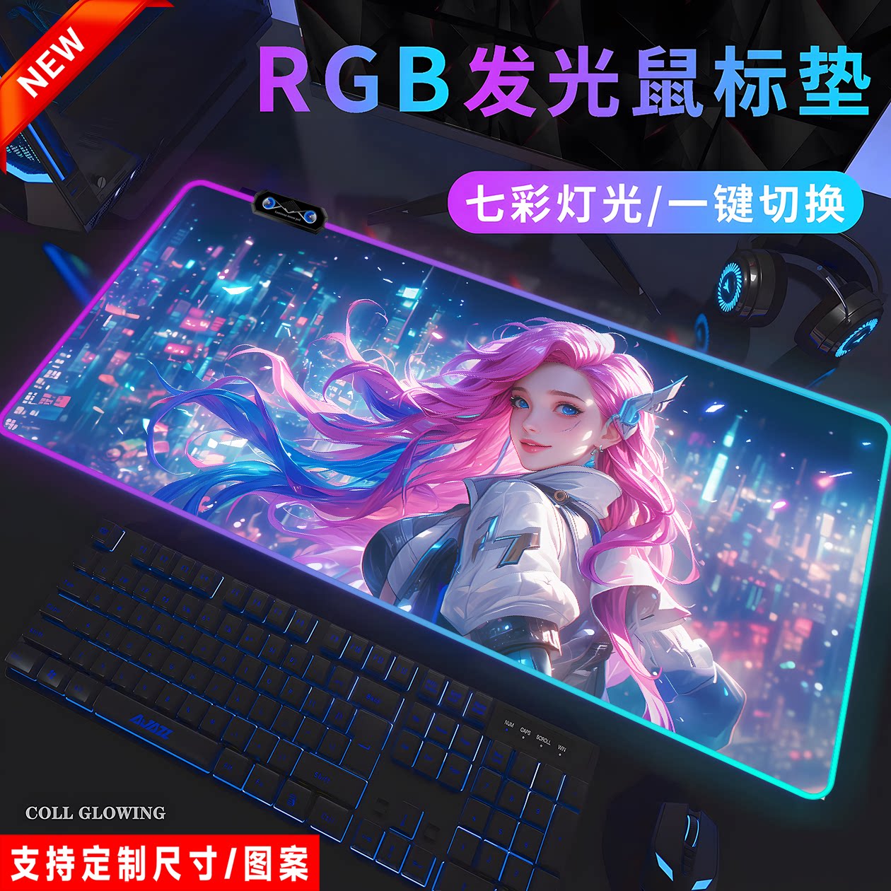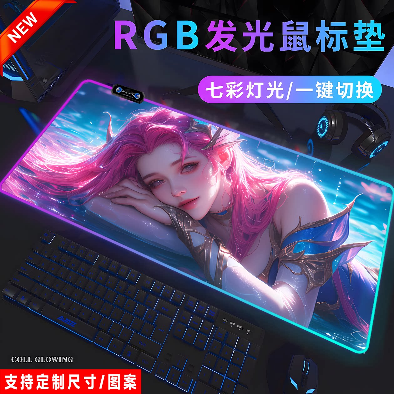 RGB萨勒芬妮发光鼠标垫电竞游戏英雄联盟键盘电脑笔记本宿舍桌垫
