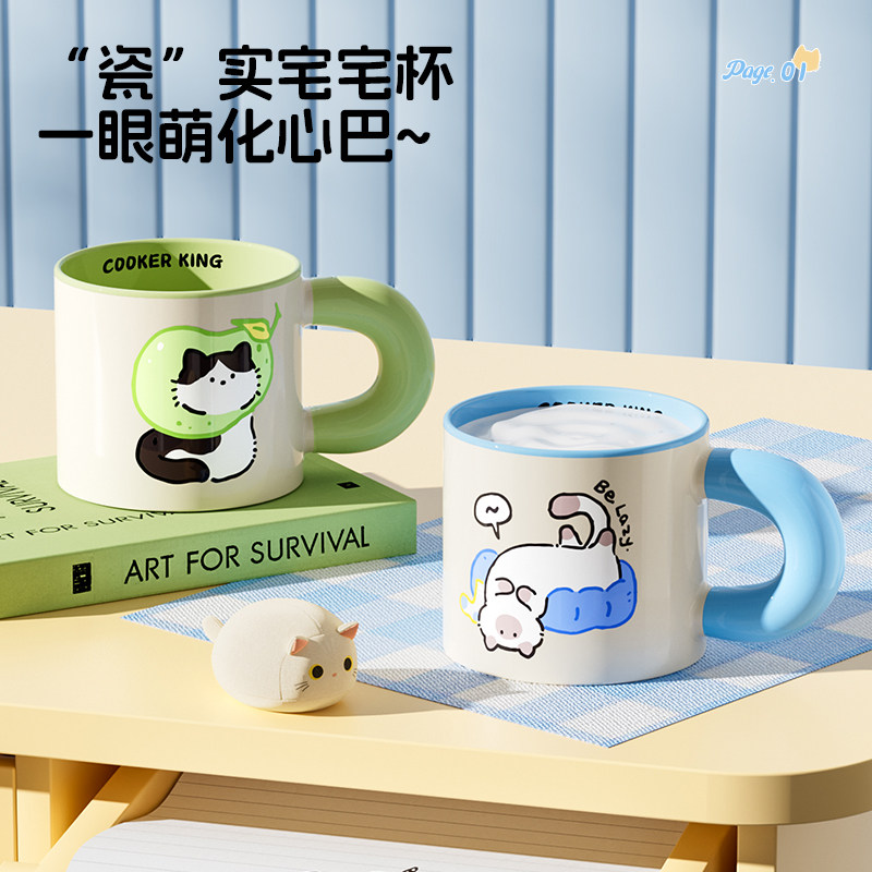 简约团团猫咪杯情侣早餐杯马克杯女生可爱卡通大容量杯陶瓷咖啡杯