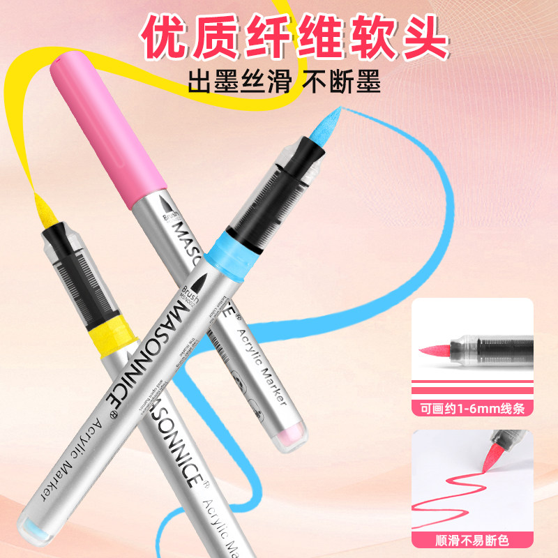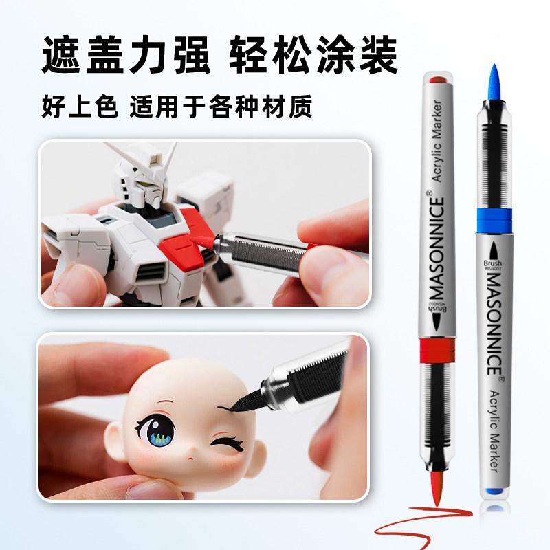 梅森尼斯直液式丙烯模型马克笔单支软头高达手办车模机甲专用水性彩色画笔涂装上色DIY手涂工具单只补色自选