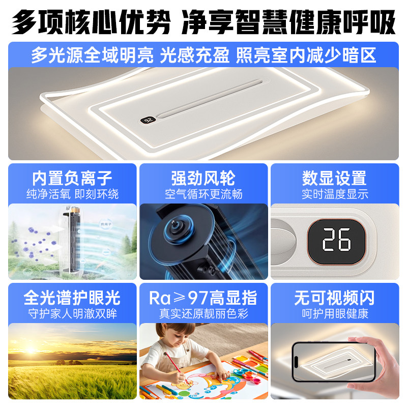 长城2026新款风扇灯工厂直供吸顶灯静音变频客厅灯风扇一体卧室灯