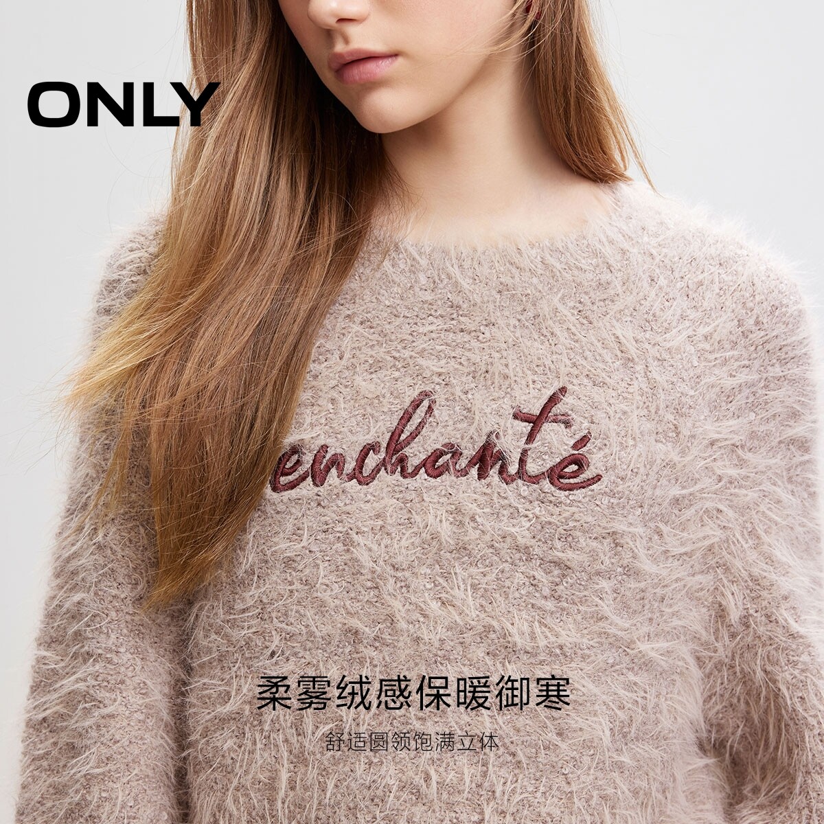 ONLY2026春季新款上衣含棉羊毛绒感设计圆领针织衫女|12513B005