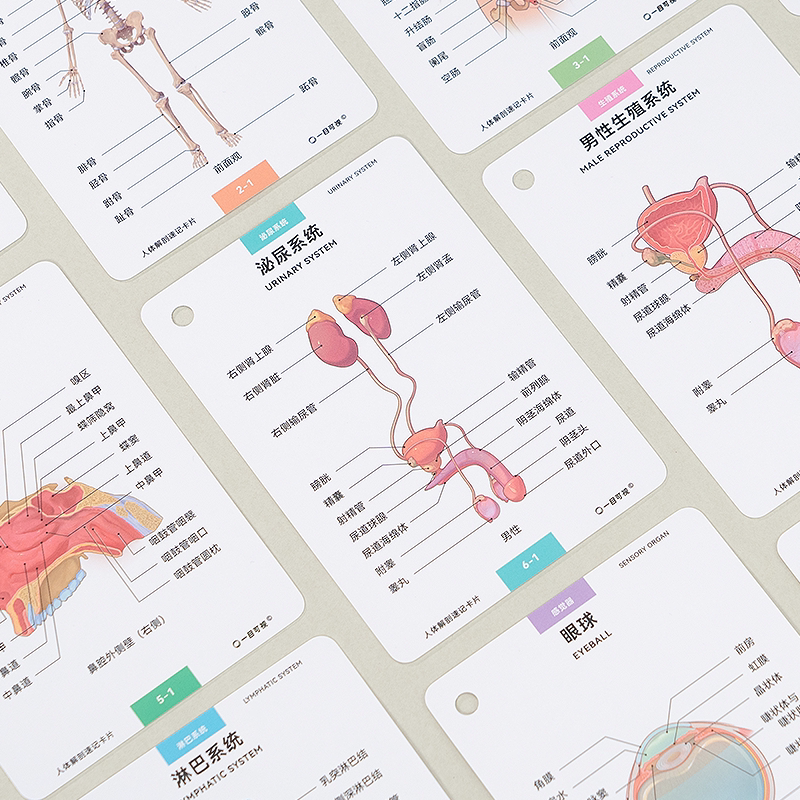 人体解剖速记卡片医学生学习科普好物一目可视超全180张医学手册