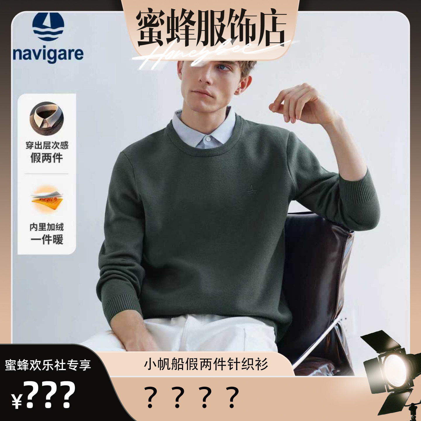 【蜜蜂欢乐社】Navigare意大利小帆船加绒加厚通勤假两件针织衫