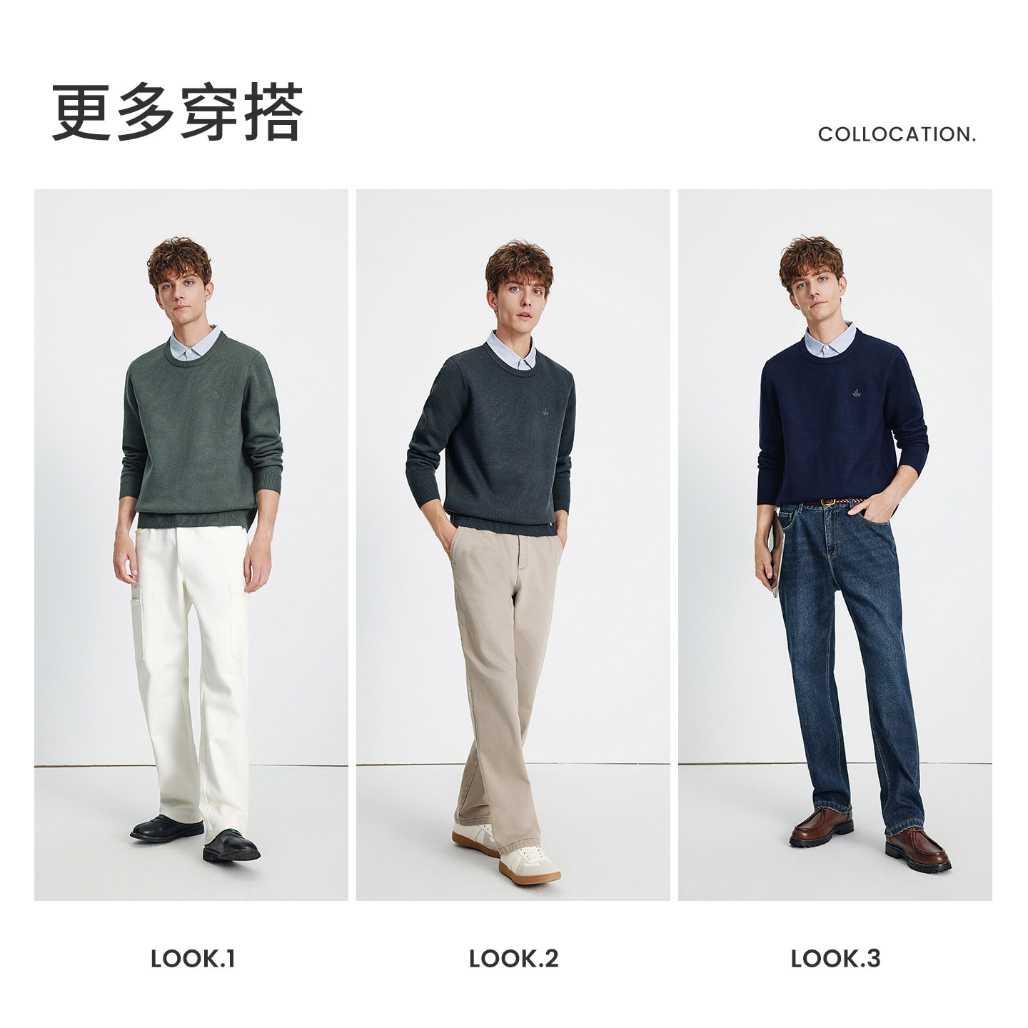 森马毛衫男冬季满版提花针织衫撞色毛衣宽松套头衫百搭提花潮-TK