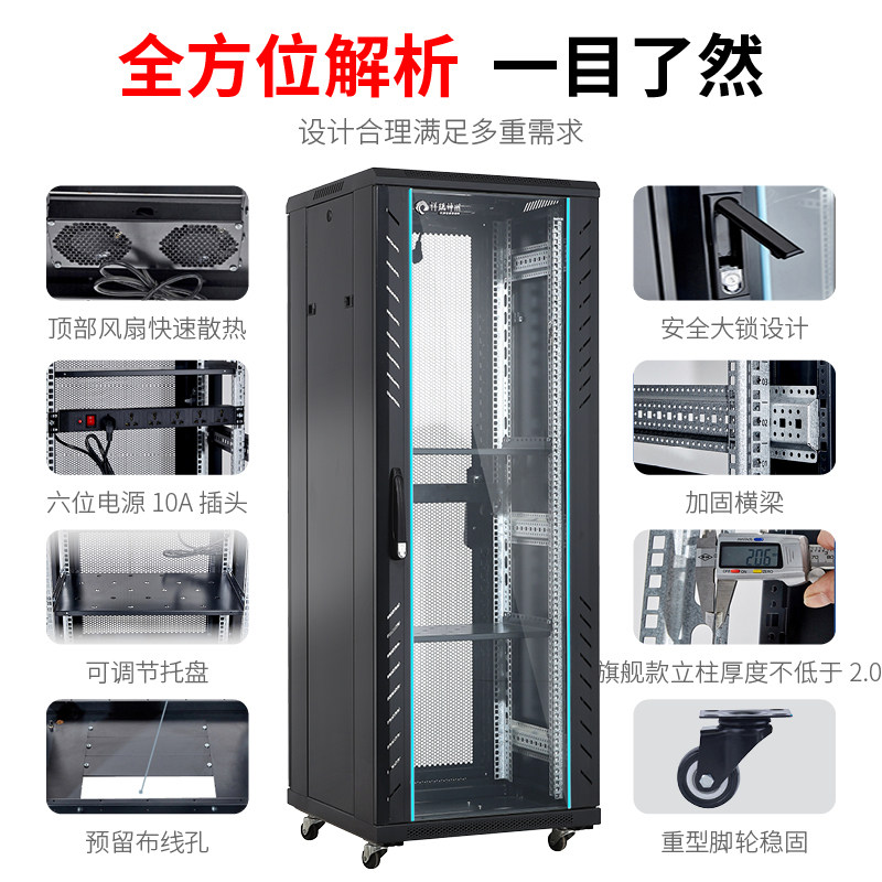 祥瑞神州18u22u32u37u42u网络服务器机柜工程级专用加厚1米1.8米2米开放式机房综合布线设备落地机柜支持定制