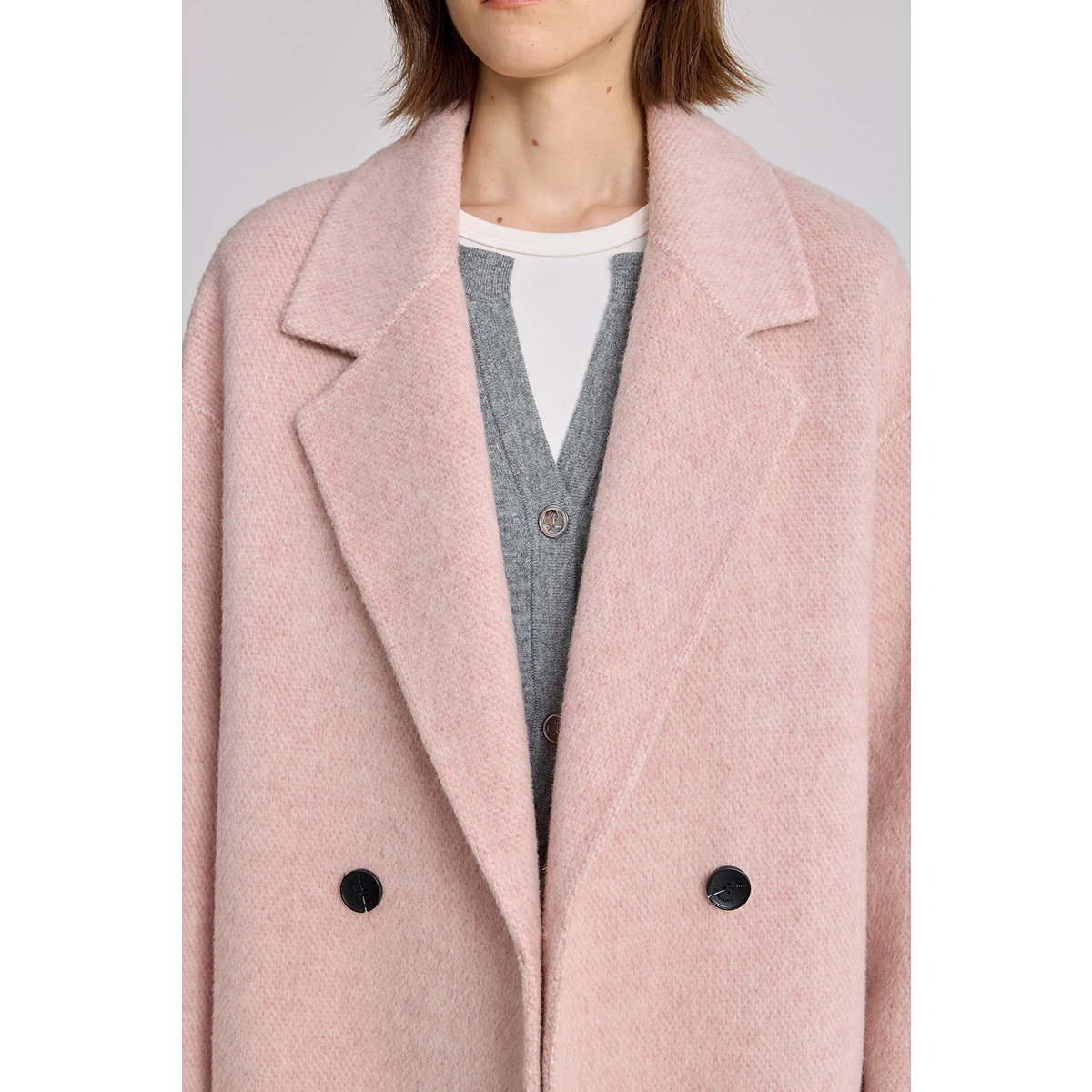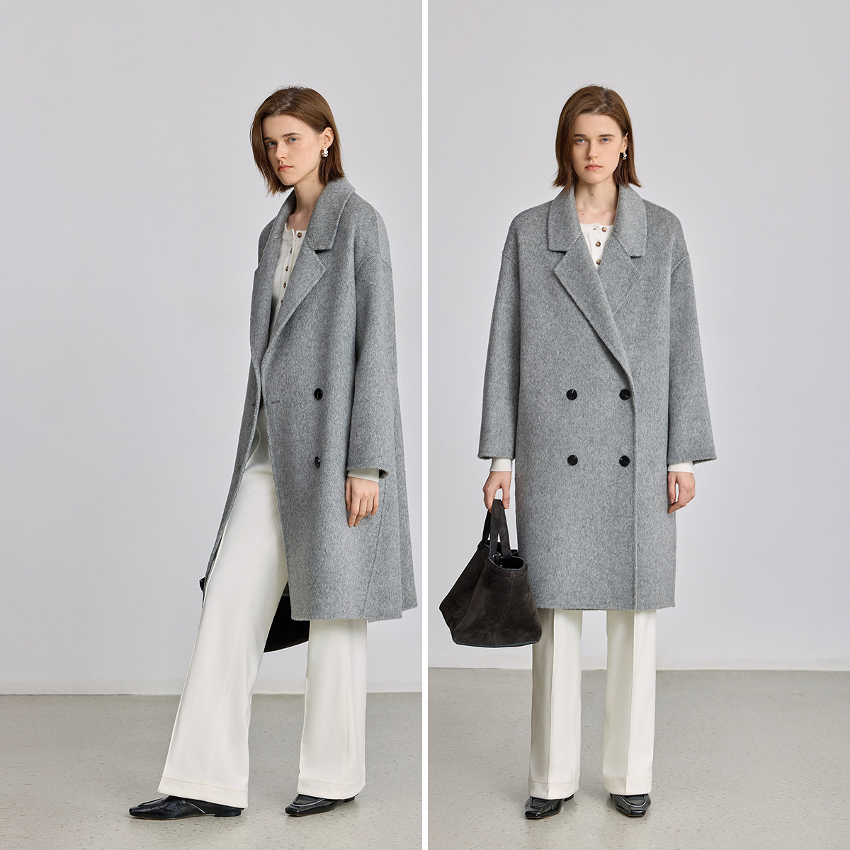 RUISHI芮时重磅驼绒桑蚕丝羊毛慵懒两穿领灰色毛呢大衣秋冬外套女
