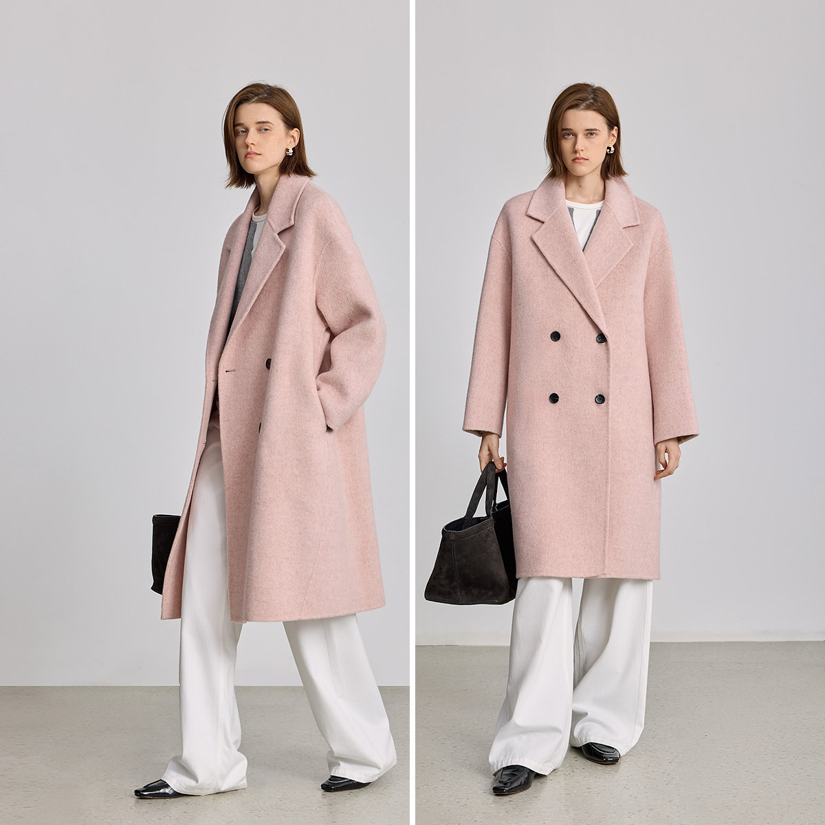 反季双面羊毛大衣女中长款2025新款西装领双排扣宽松显瘦毛呢外套