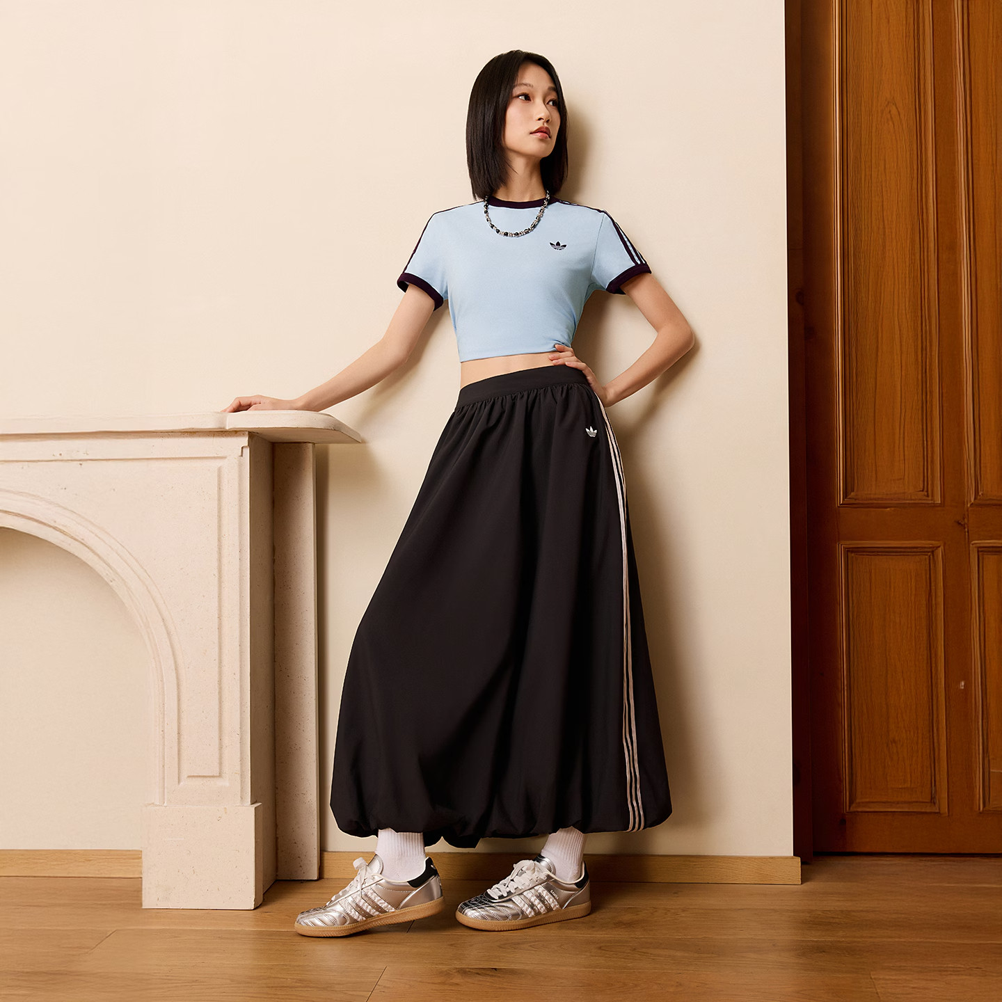 阿迪达斯三叶草气质中长款蓬松运动花苞裙2026春女半身裙 KC8088