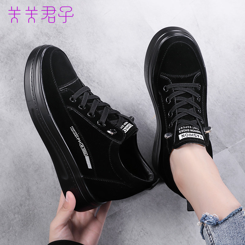 【明星同款】Wander around春秋款黑色厚底增高休闲板鞋男女同款