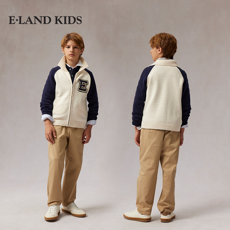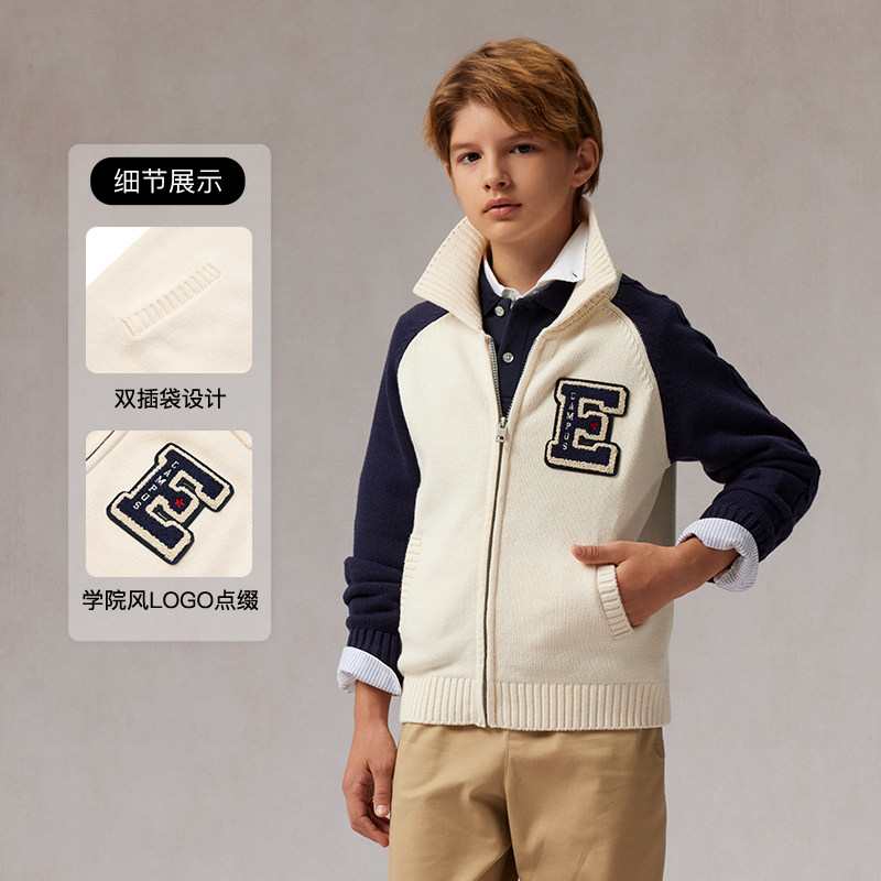 eland kids衣恋童装男童针织开衫春秋休闲学院风拼色毛巾绣拉链