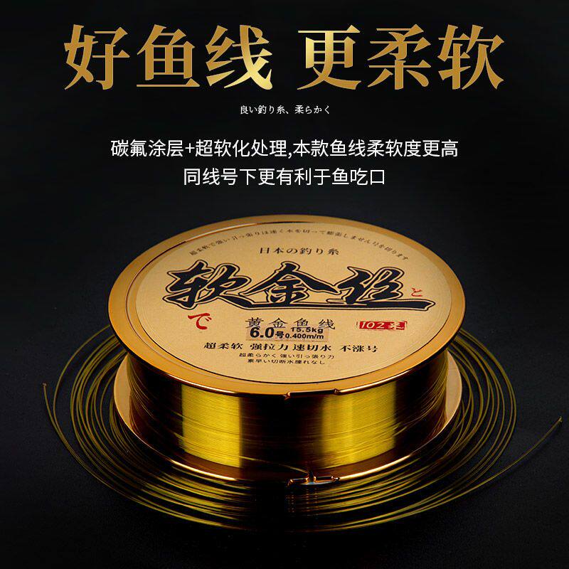 日本进口超柔软钓鱼尼龙线超强拉力不打卷台钓路亚主线子线软金丝