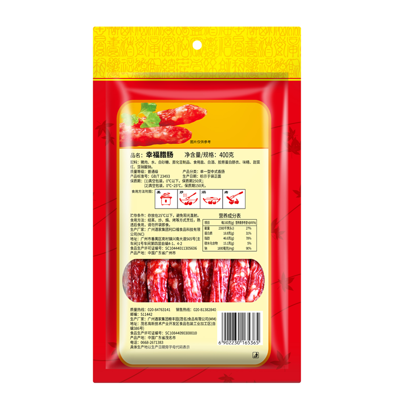 广州酒家秋之风幸福腊肠400g广式甜味香肠烤肠腊味广东特产年货