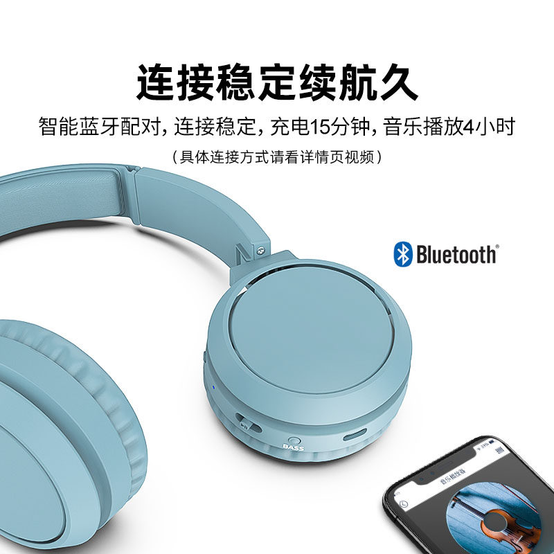 飞利浦H4205 无线蓝牙可折叠头戴式男女生耳机运动跑步头戴耳机