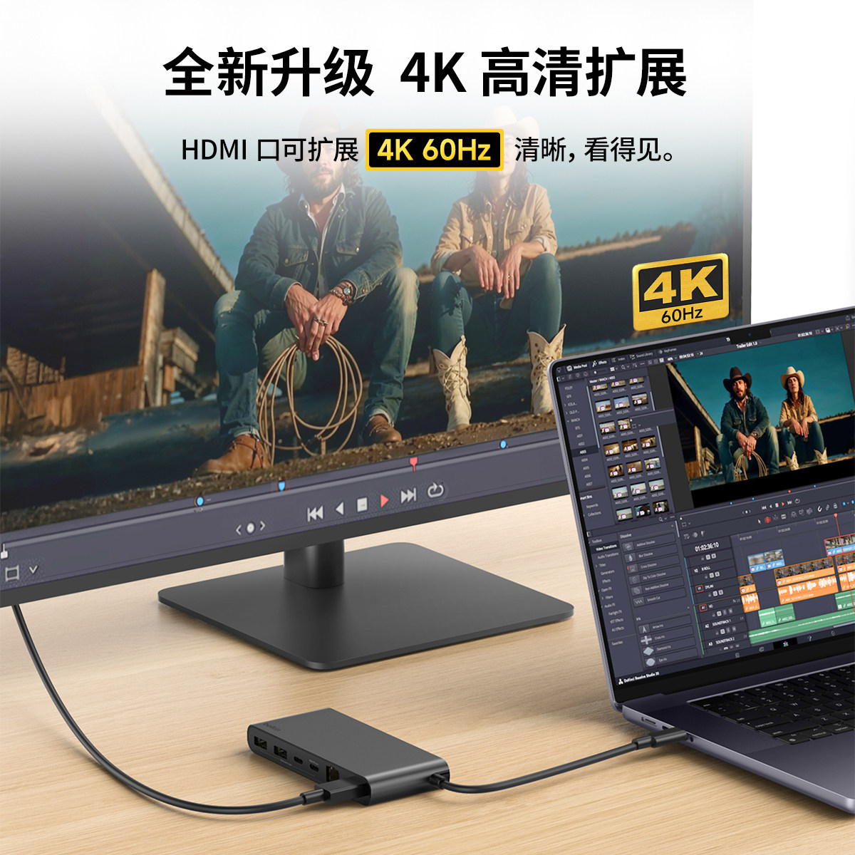 笔记本电脑HDMI高清投屏4K适用苹果macbook扩展坞typec拓展器USB3.0显示器U盘键盘鼠标air pro转换分线器mac