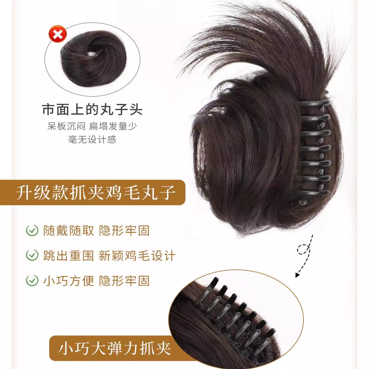 低扎鸡毛丸子头假发发圈仿真发假发抓夹花苞毽子头盘发神器假发包