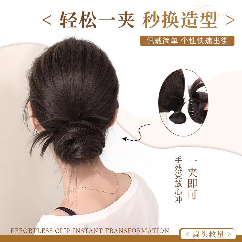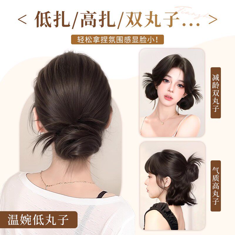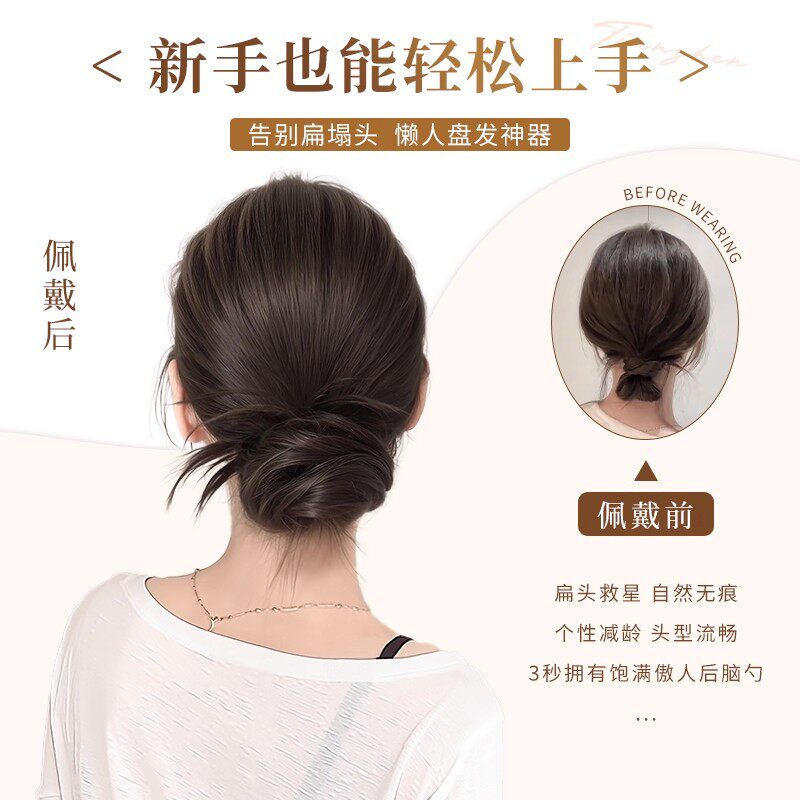 低扎丸子头假发鸡毛头抓夹盘发发包慵懒感造型头饰自然蓬松后脑勺