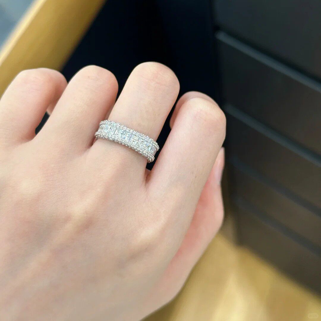 高版本方形闪钻戒指女精工满钻微镶戒指精致百搭送女朋友七夕礼物