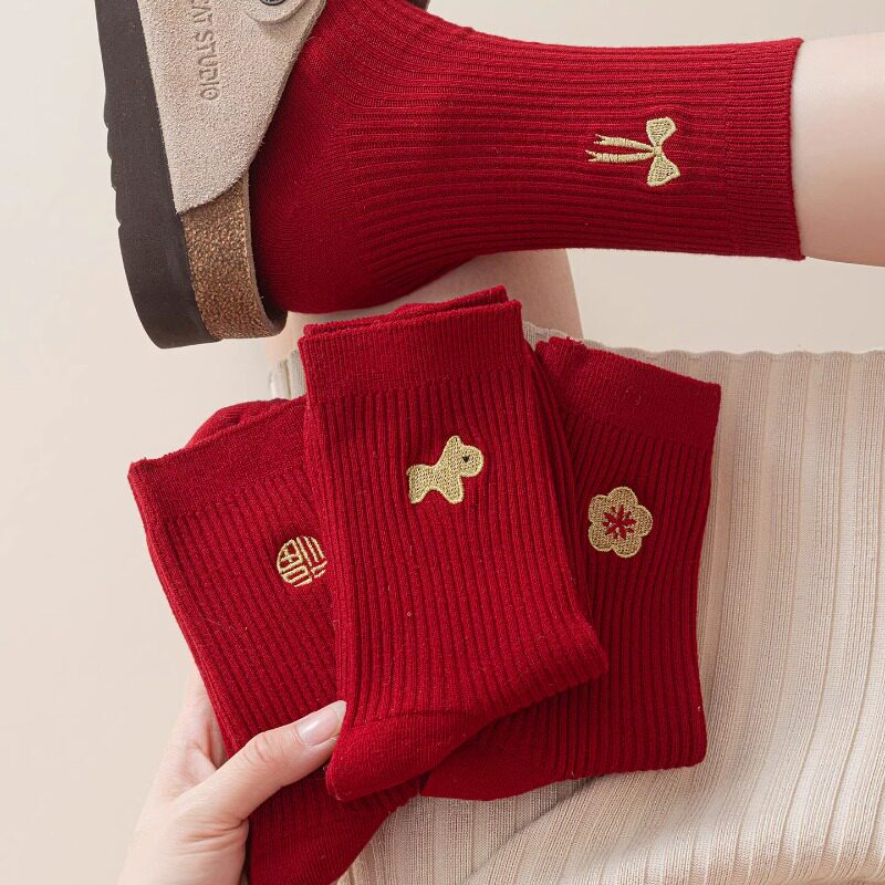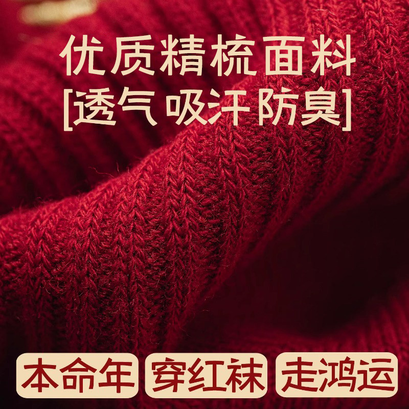 大红色本命年袜子男女款中筒袜秋冬季新年袜2026属马情侣长袜马年