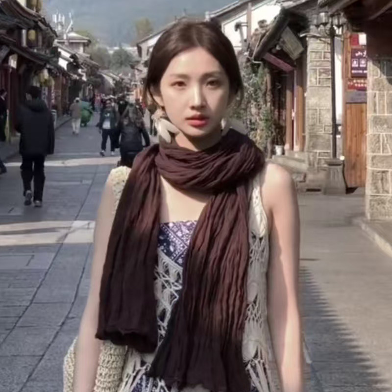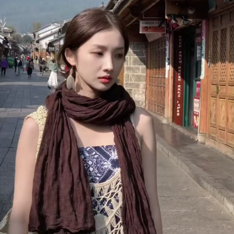 复古棉麻褶皱围巾披肩外搭女2025新款废土风沙漠头巾文艺古着丝巾