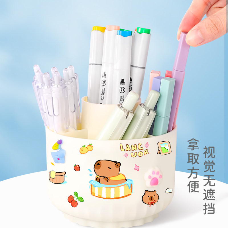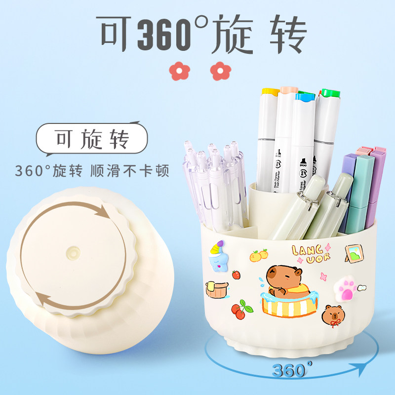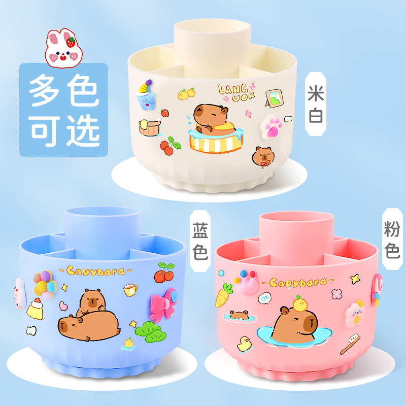 卡皮巴拉可360°旋转笔筒5格分类收纳小学生桌面文具收纳盒多功能大容量笔筒办公室桌面创意可爱幼儿园伴手礼