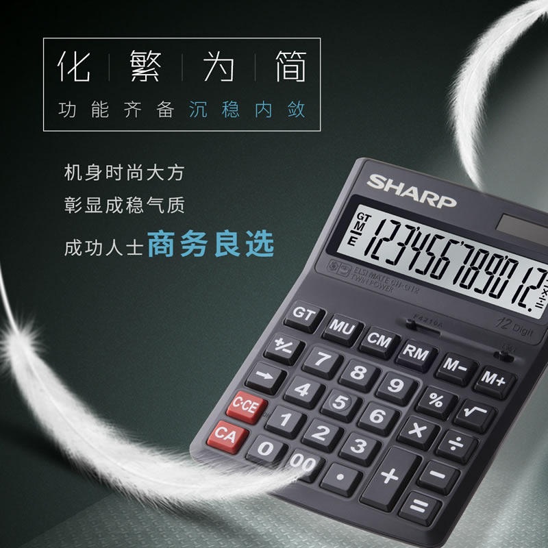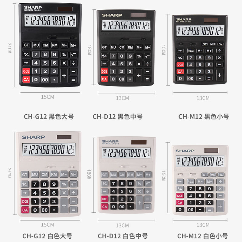SHARP夏普CH-M12/D12/G12电子台式商务办公用计算器小型大号12位数太阳能地摊神器出纳会计财务计算机