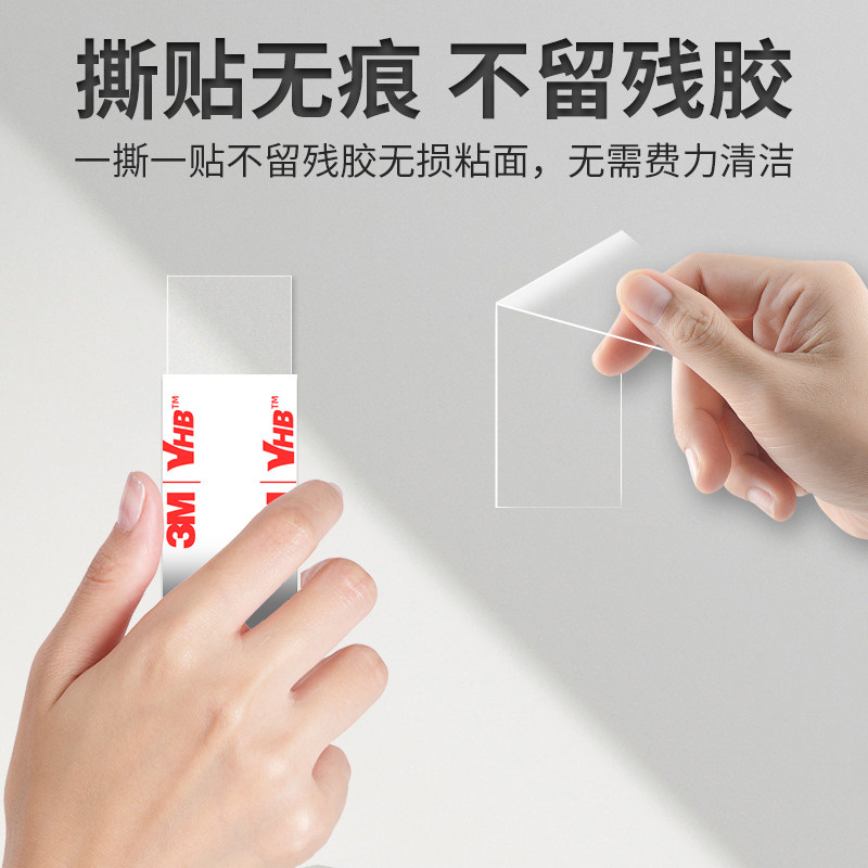 3M4905P透明双面胶强力承重无痕高粘度固定墙面防水耐高温免打孔车载装饰摆件路由器挂钩专用薄款方形贴片