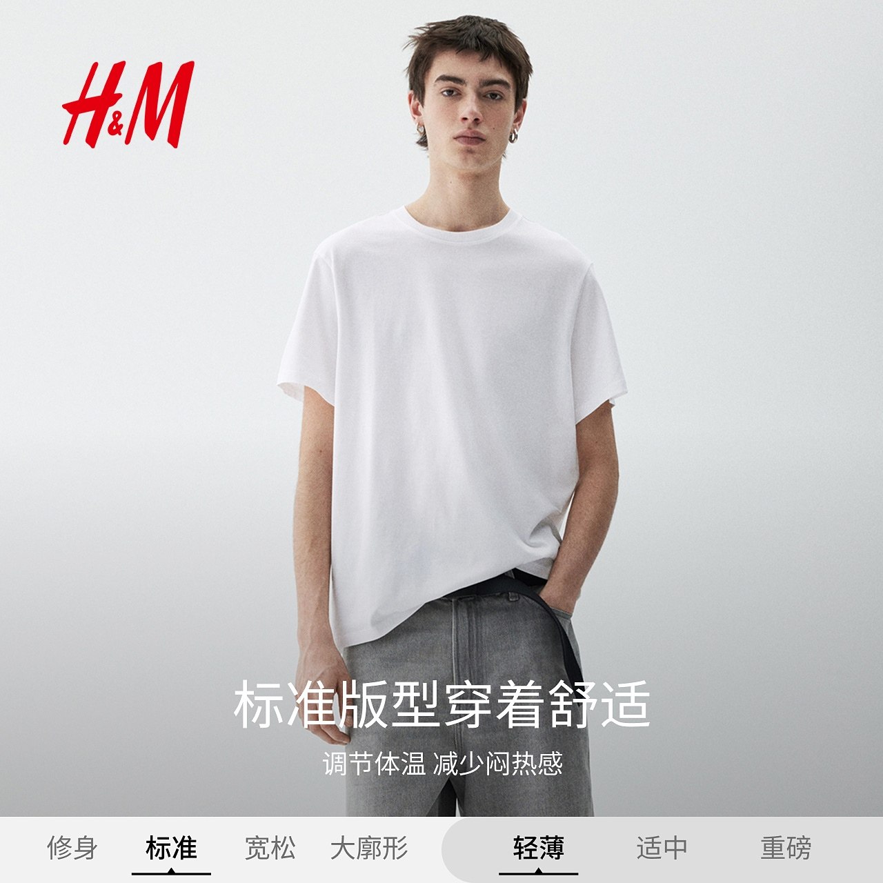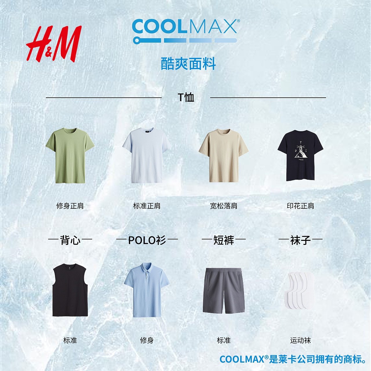 HM男装女装T恤冬季COOLMAX®凉感透气运动圆领情侣装短袖0967153