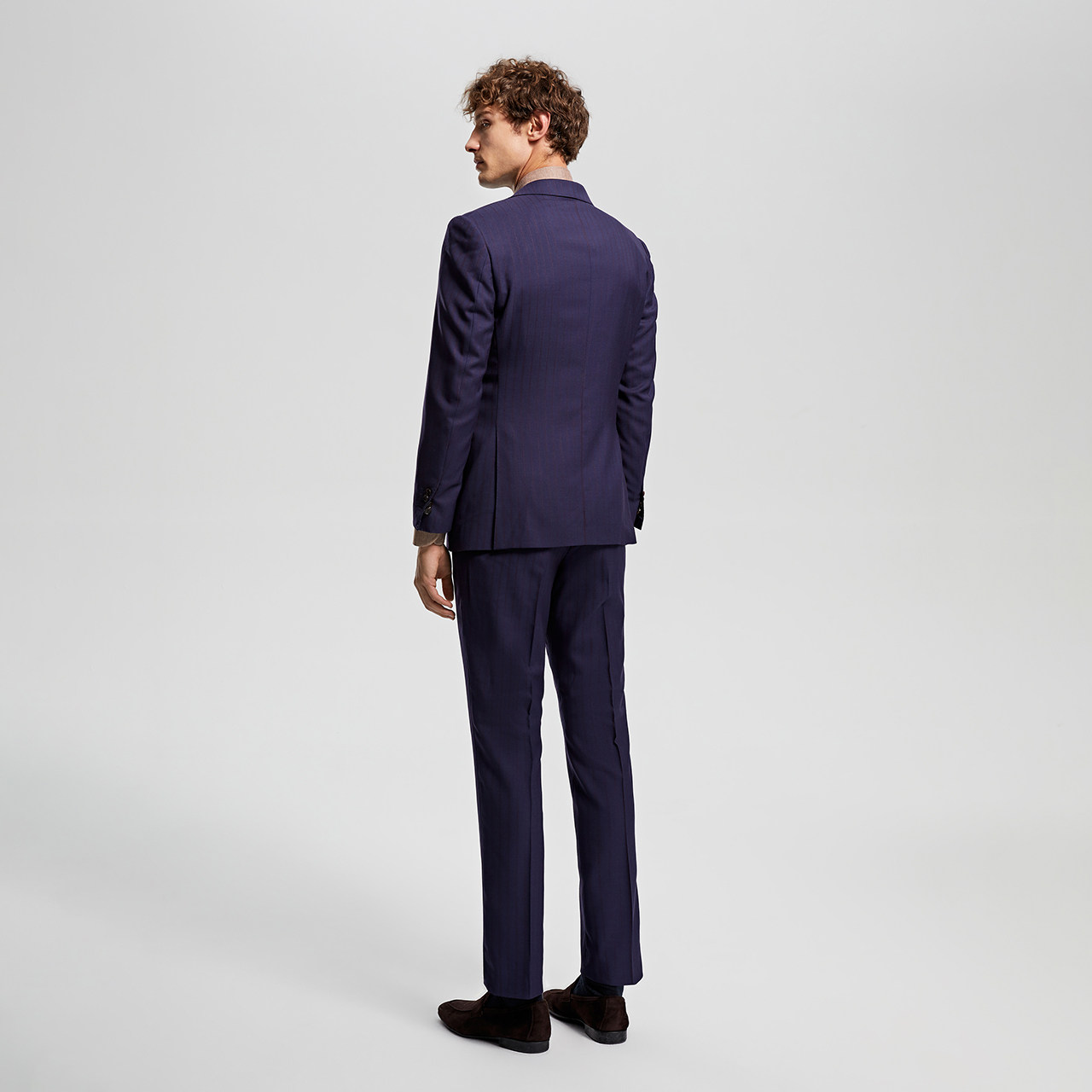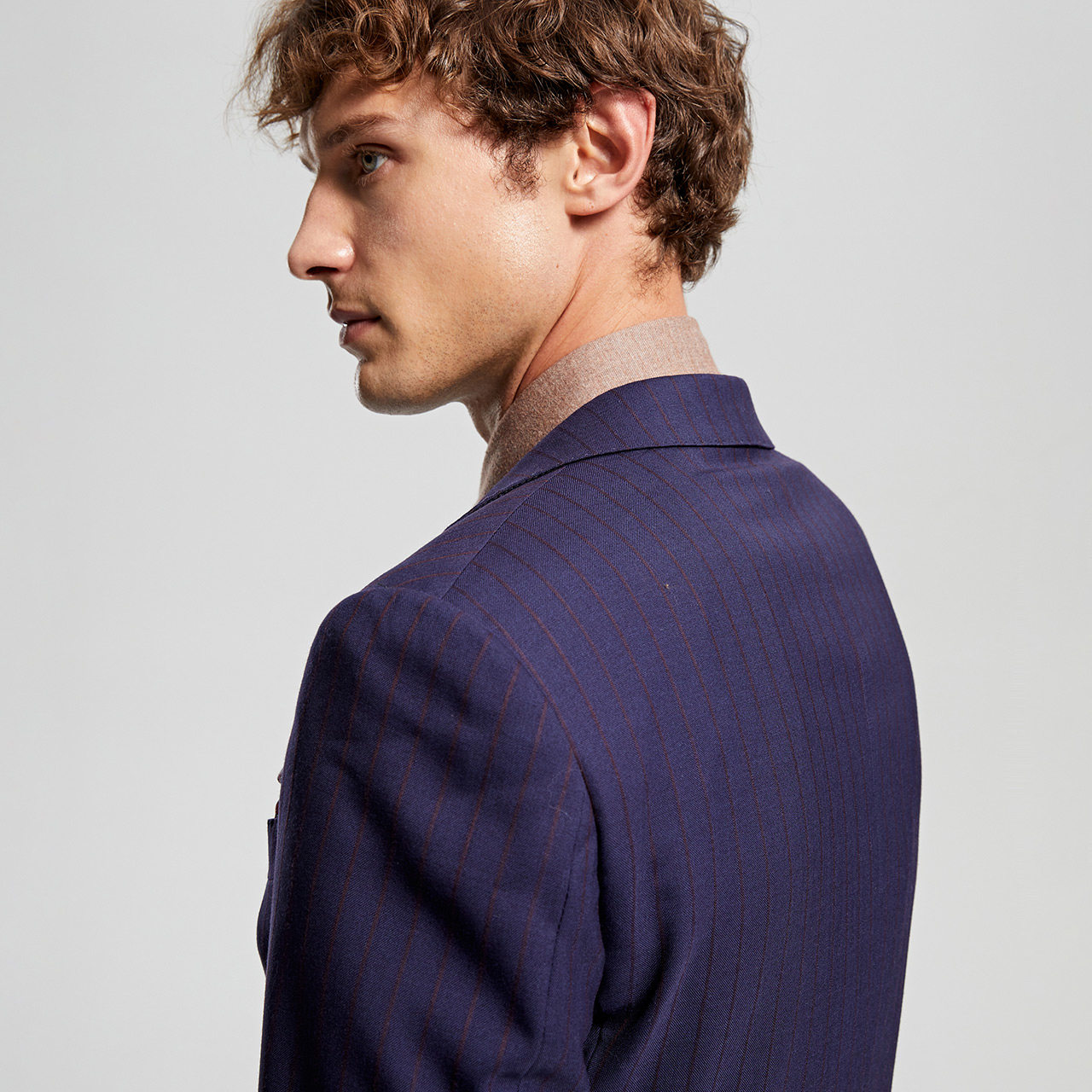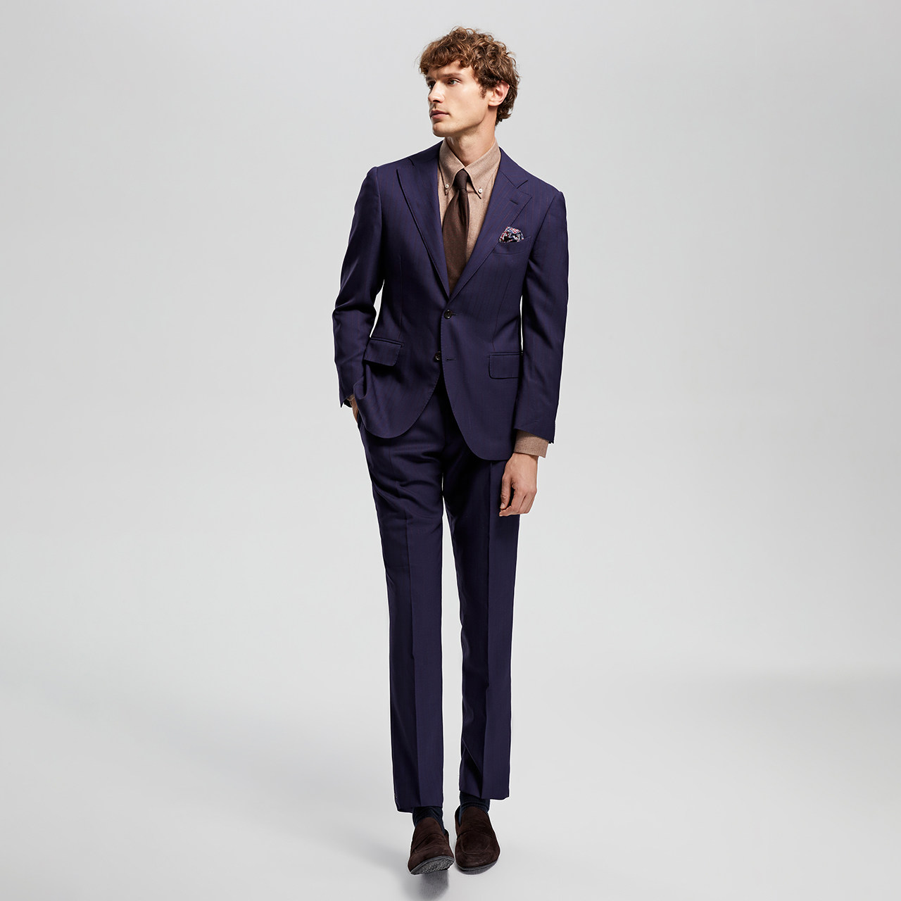 柏品130支纯羊毛条纹商务西服套装男修身半麻衬职业正装新郎西装