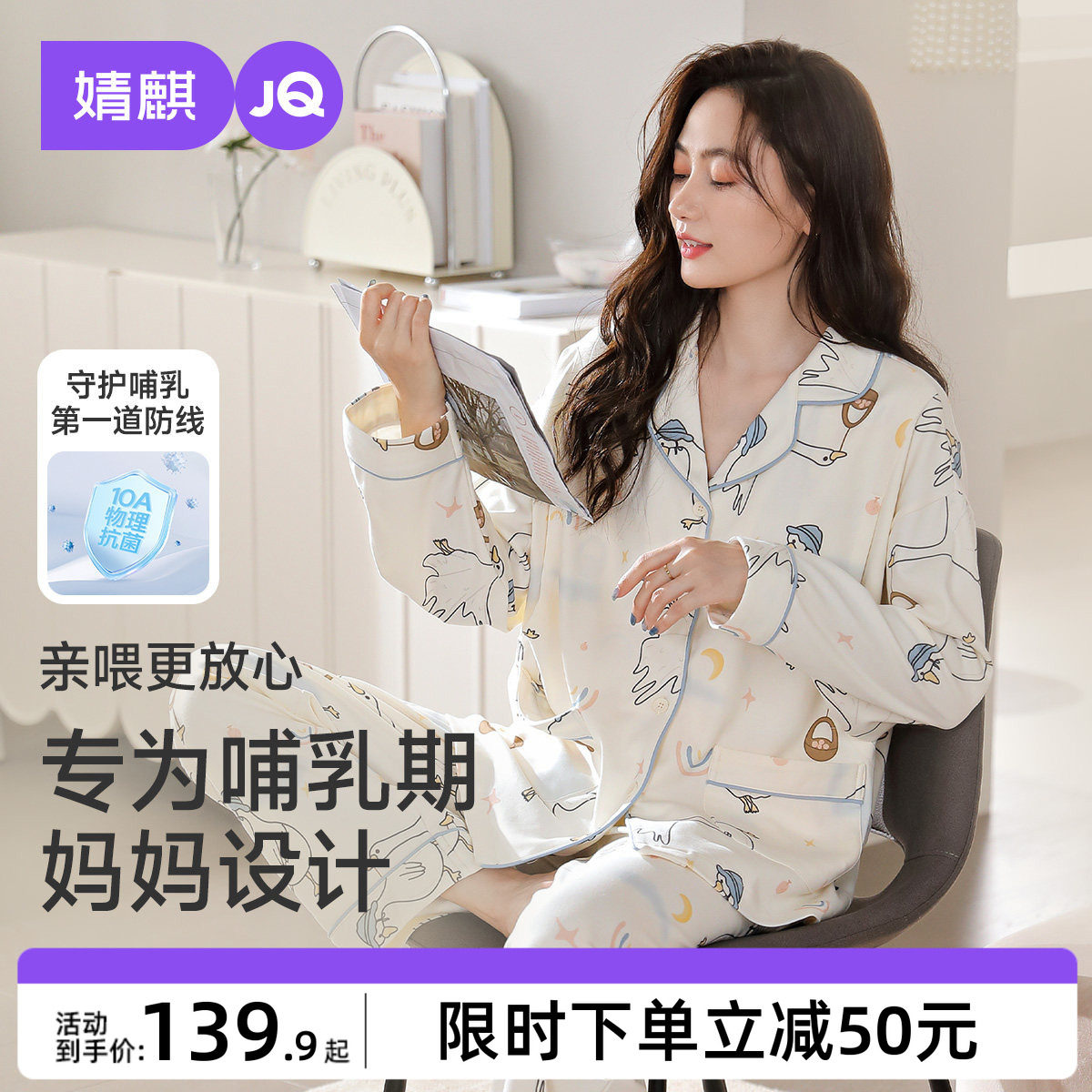 十月结晶兜兜鸭纯全棉吸汗月子服哺乳睡衣7A抗菌12月家居服女冬季