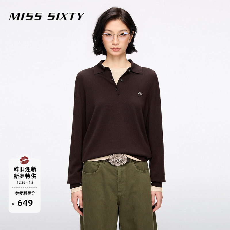 【保暖羊毛】Miss Sixty2025春秋新款针织衫polo领高智感通勤毛衣
