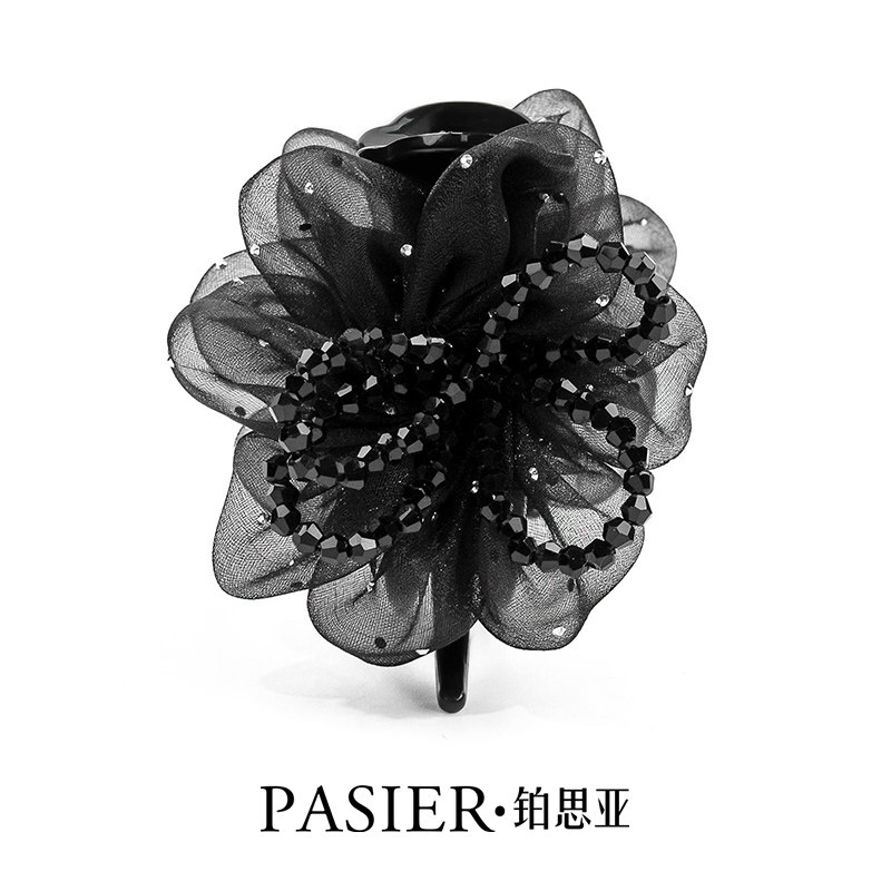 铂思亚花朵发夹女2025新爆款路易斯巴黎王妃丸子夹欧根纱抓夹头饰