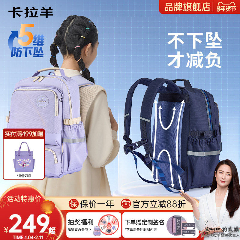 【直播加赠】卡拉羊3-6年级小学生书包减负护脊超轻儿童双肩包男女生初中生背包大容量高中生书包官方旗舰店