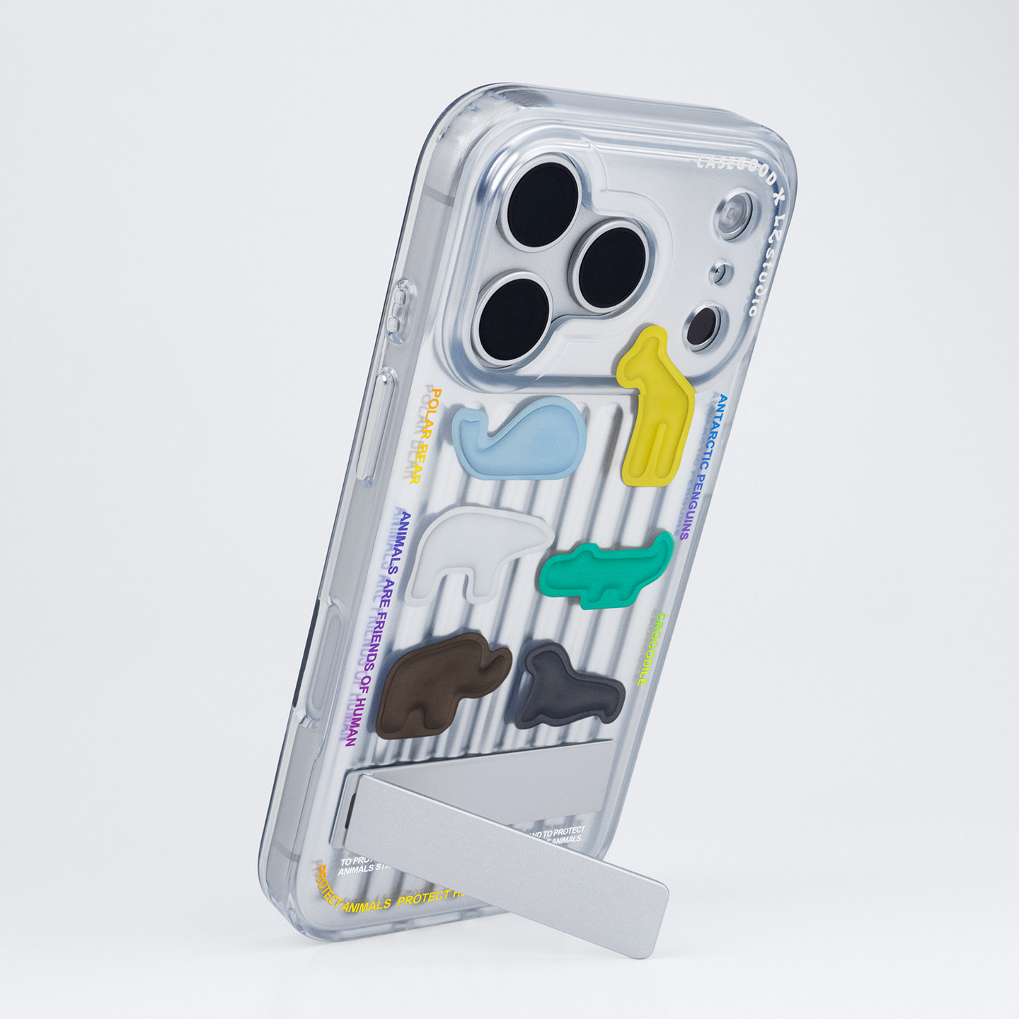 CASEGOOD 原创电镀银色高级一体支架手机壳15苹果17pro新款适用iPhone16promax保护套折叠隐藏式行李箱纹