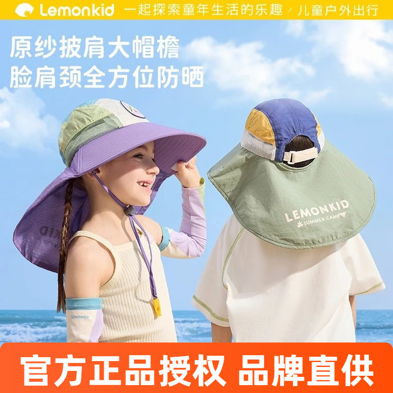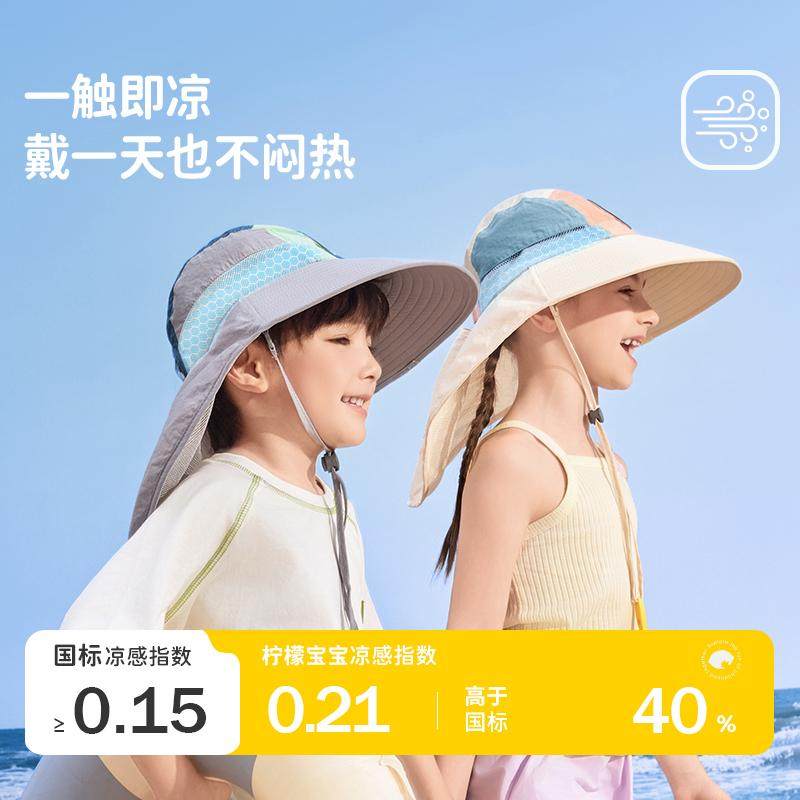 柠檬宝宝儿童防晒帽男生女孩遮阳帽夏季海边沙滩防紫外线太阳帽子