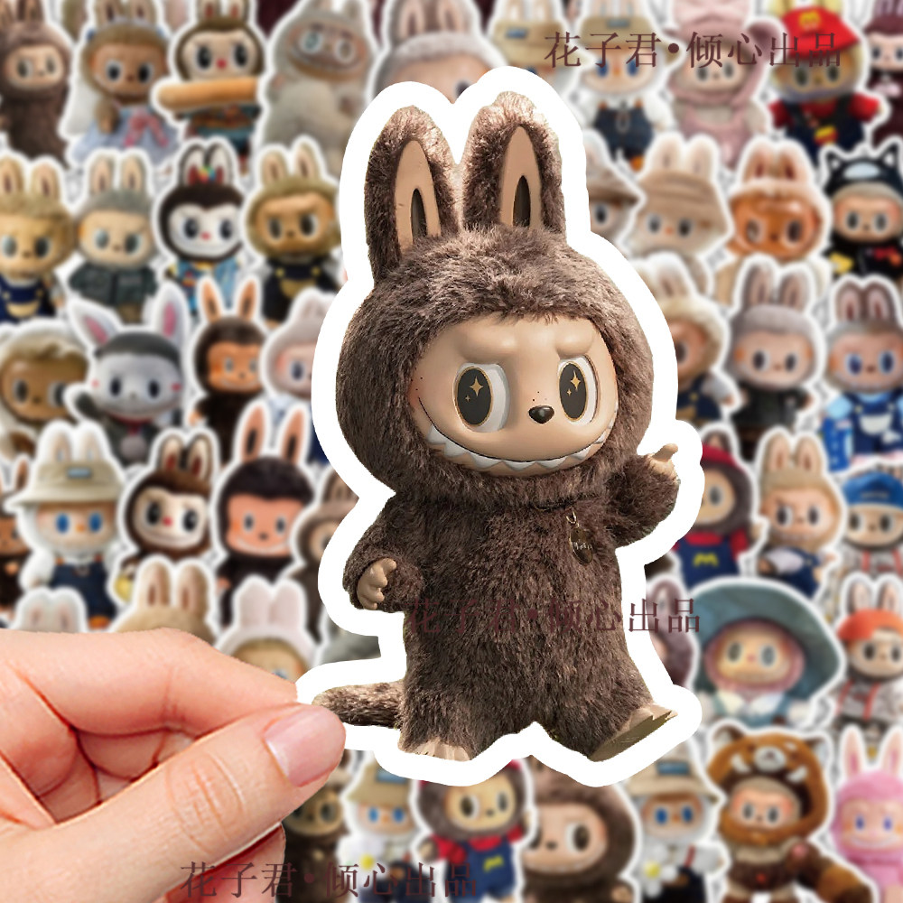 124张拉布布贴纸ins卡通可爱潮玩玩偶公仔创意贴画diy桌面手机壳