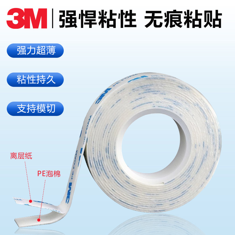 3M1600T白色泡棉双面胶车用泡沫胶正品强力海棉耐温双面胶加厚1MM