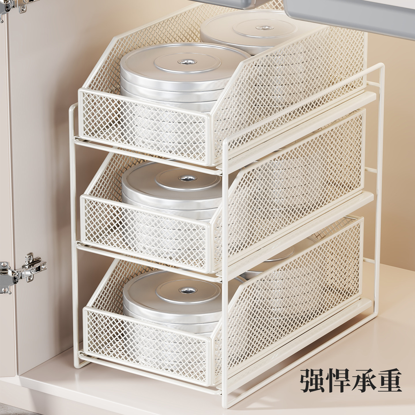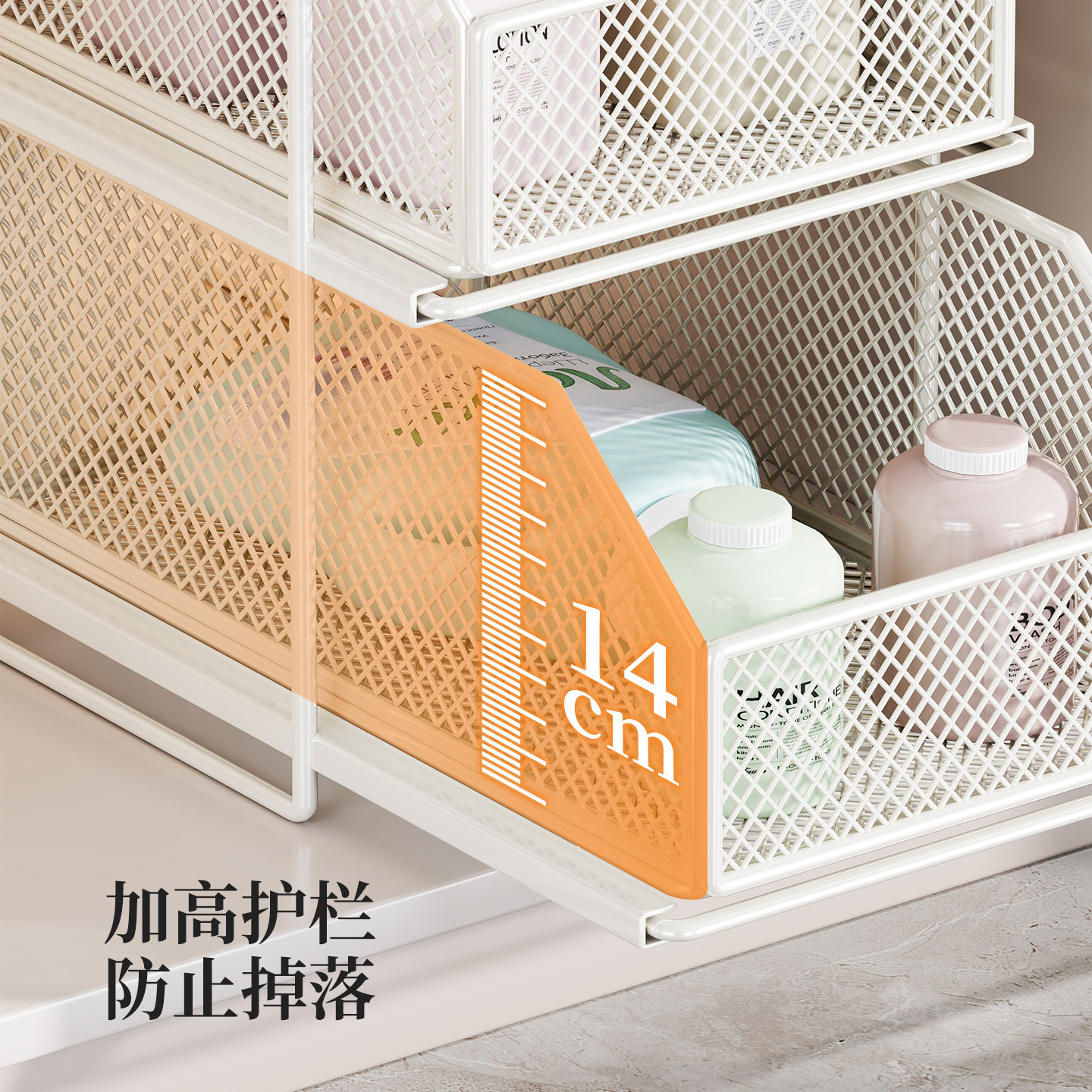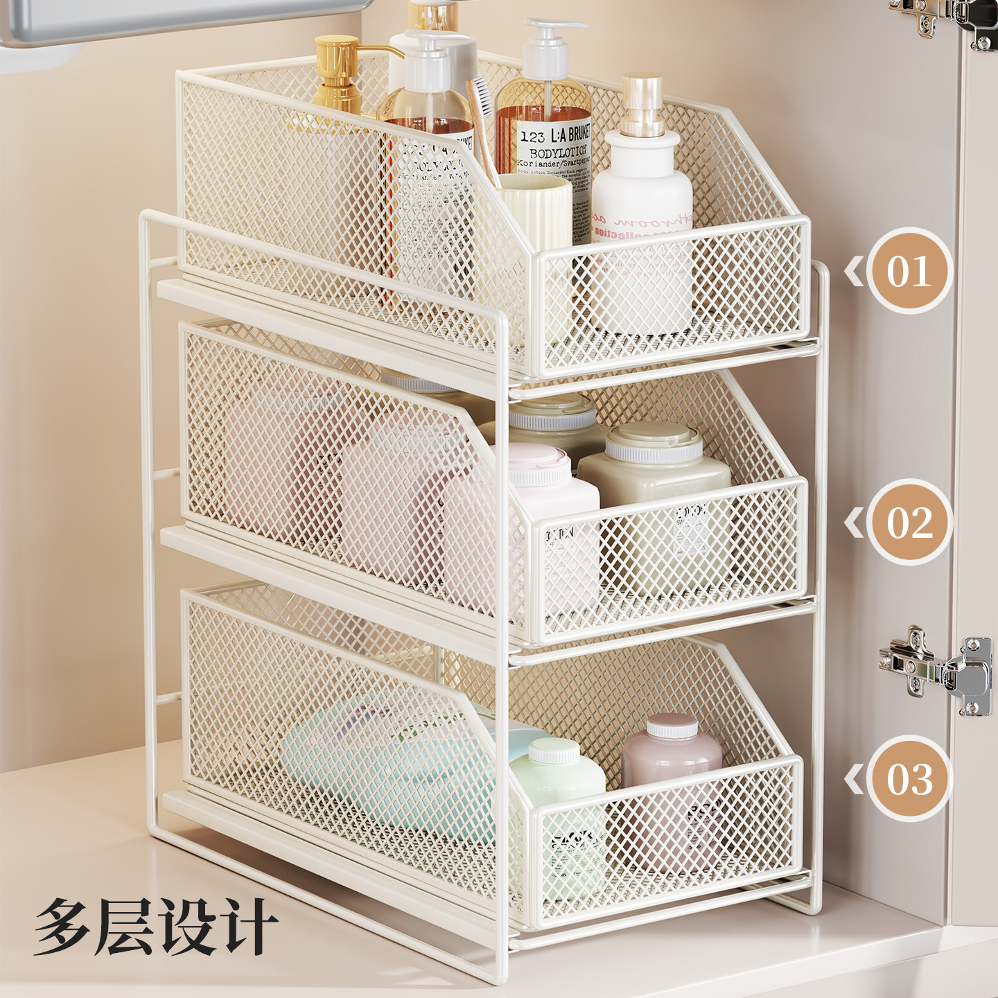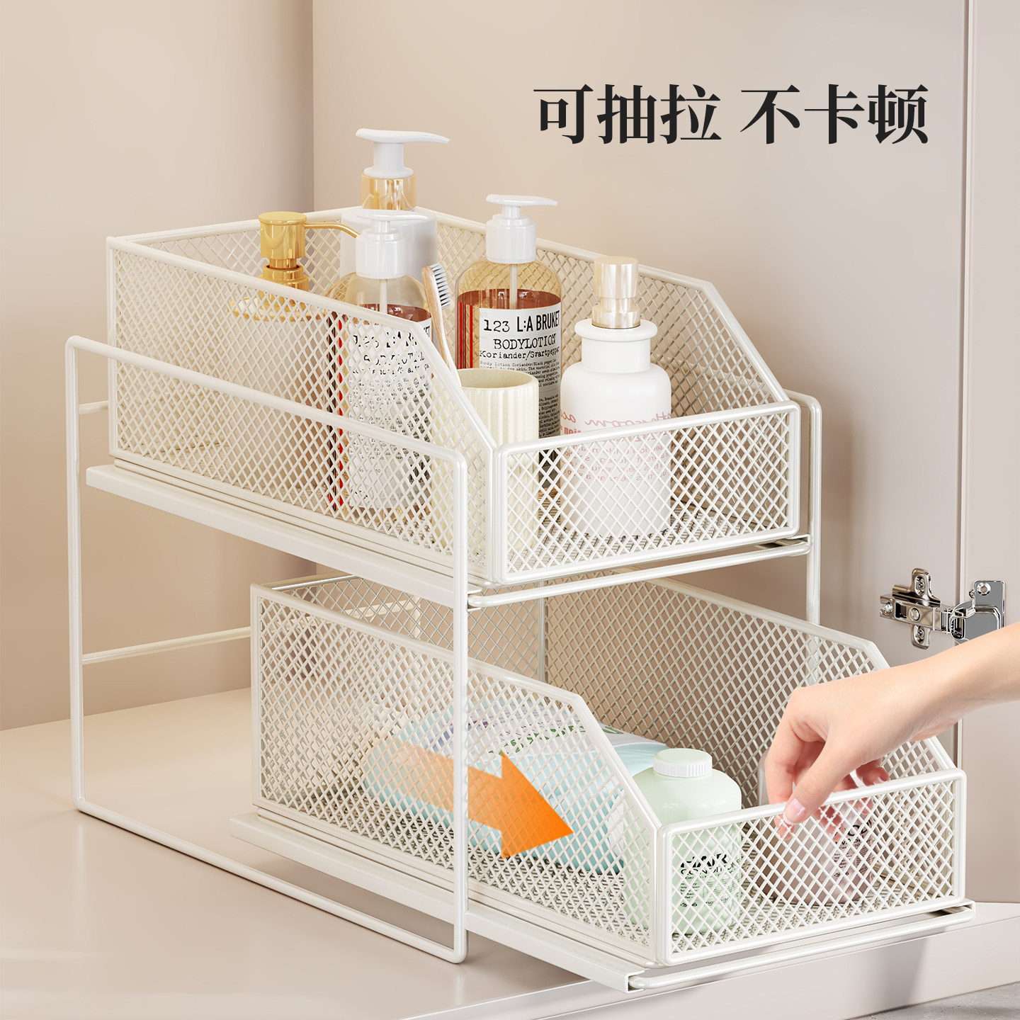 下水槽置物架抽拉式浴室柜下收纳盒多层橱柜分层洗护用品收纳铁艺