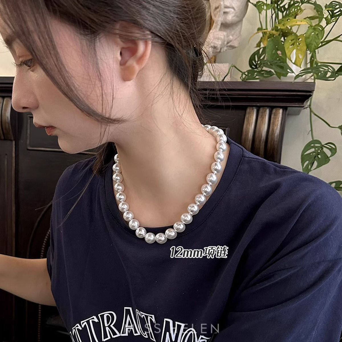 正圆无暇珍珠项链女倪妮同款人造珍珠颈链强光澳白色贝珠锁骨链