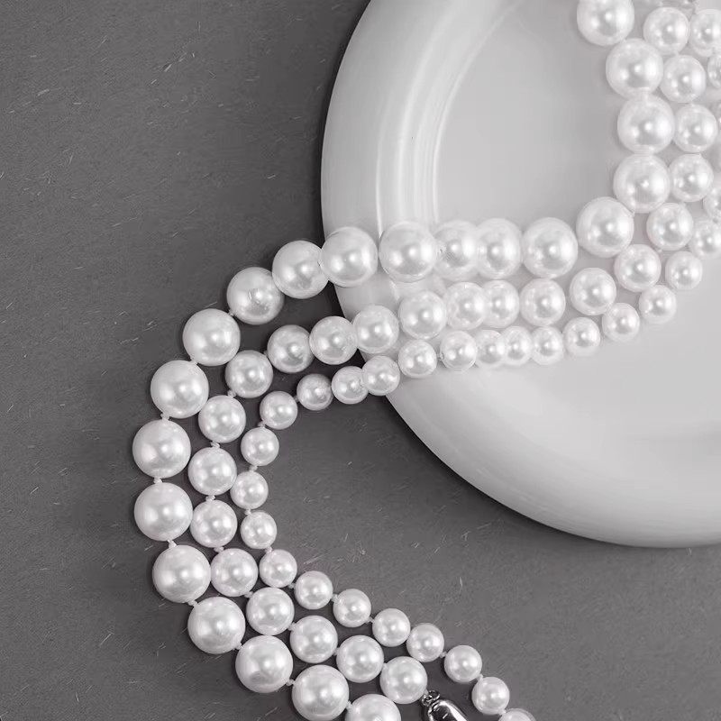 施家真多麻灰色珍珠项链颈链轻奢小众毛衣链配饰女款2025新款爆款