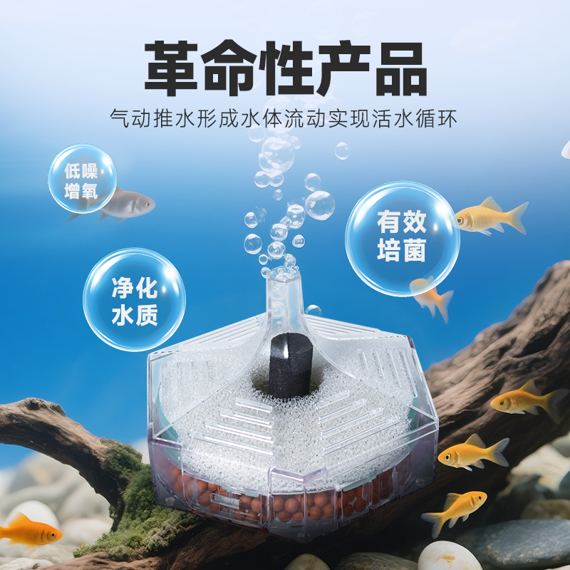水妖精过滤器鱼缸小型增氧反气动举静音三合一培菌小米鱼缸辅助滤