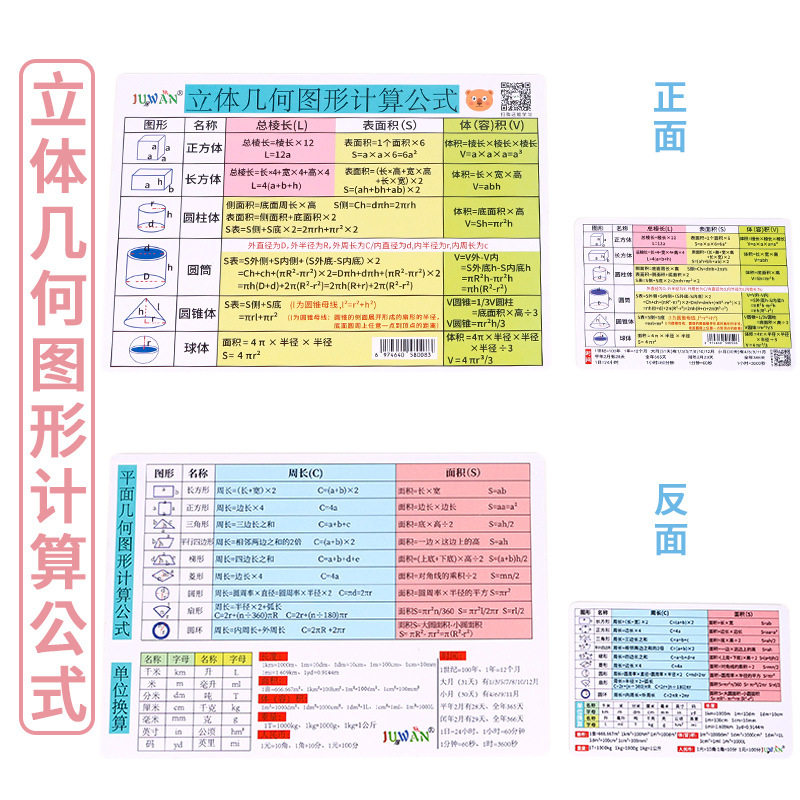 初中数学知识点卡片数学立体几何图形计算公式大全挂图墙贴卡