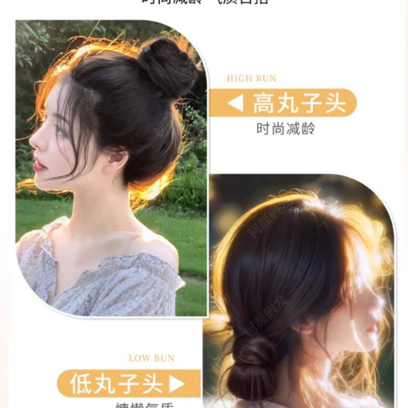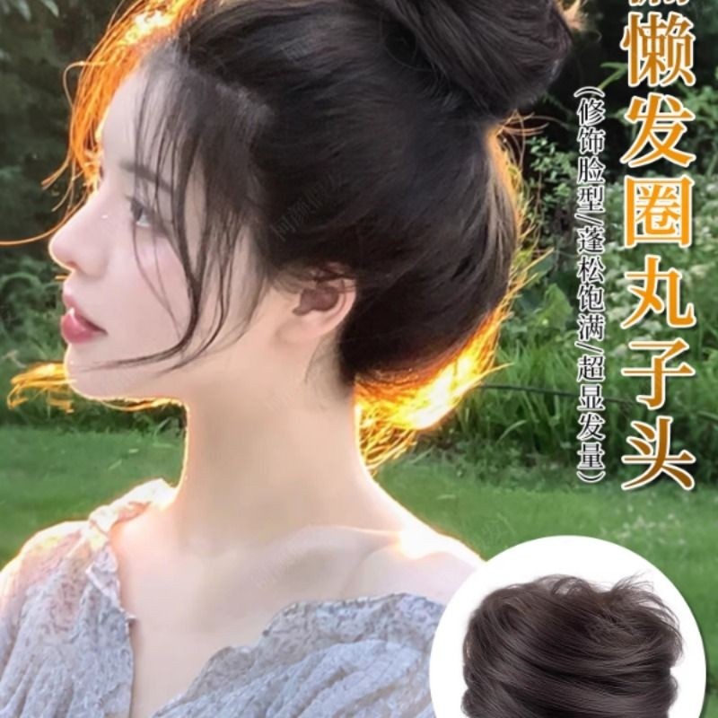 低扎丸子头假发鸡毛头抓夹盘发发包慵懒感造型头饰自然蓬松后脑勺