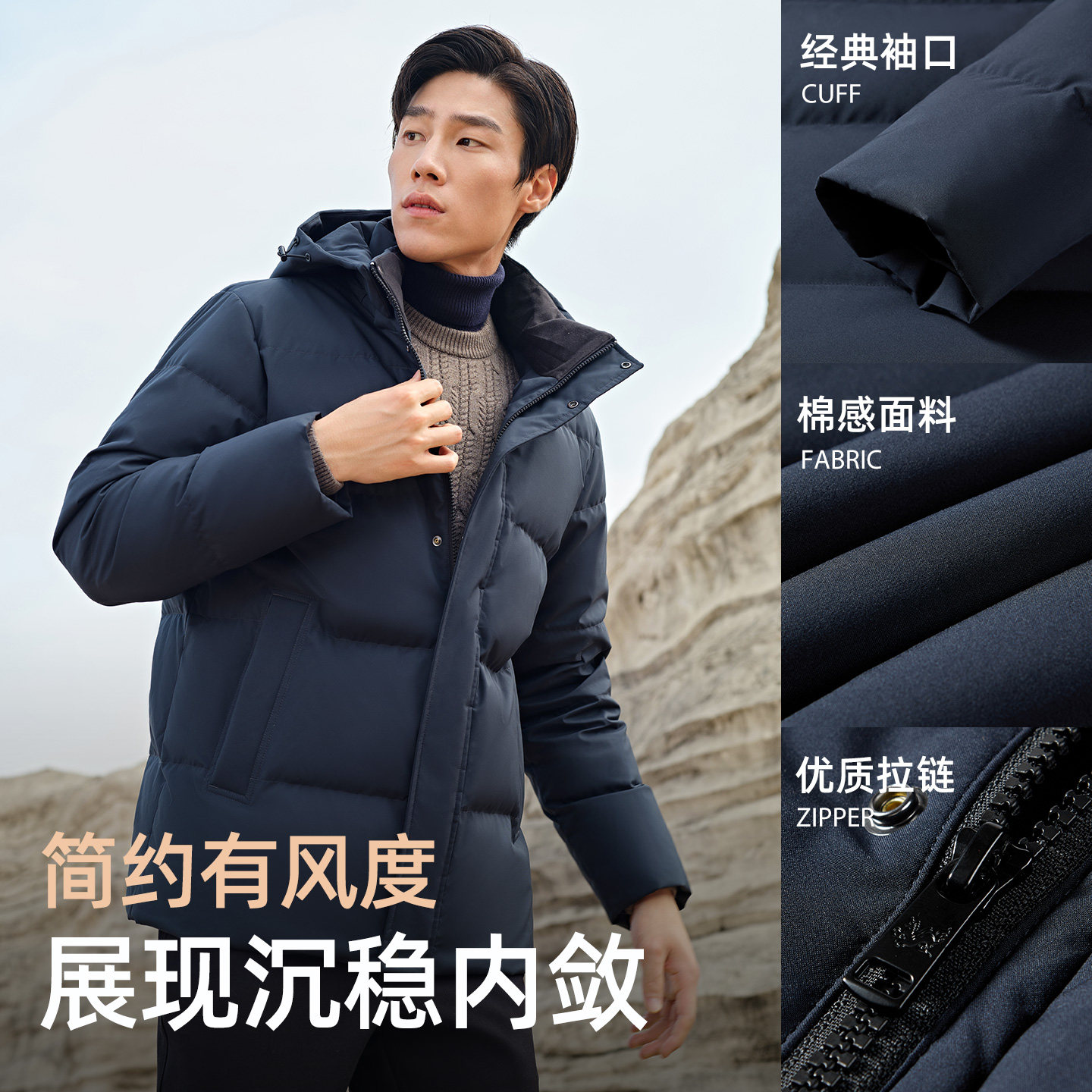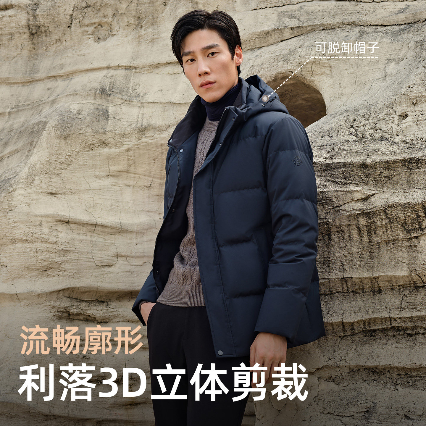 【高克重鹅绒服】雅戈尔官方秋冬新款男士商务行政保暖可脱帽外套