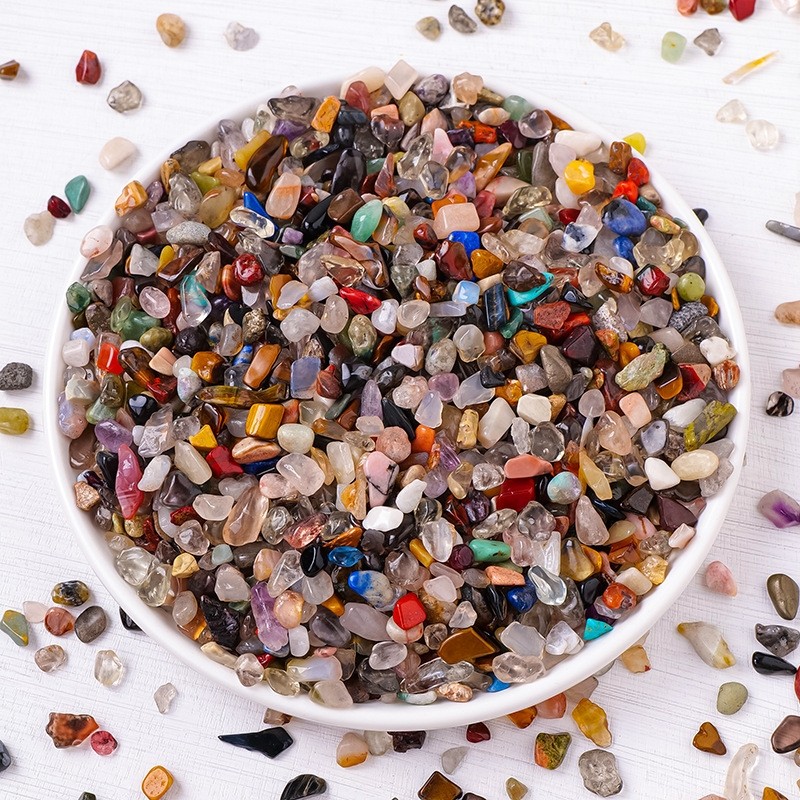 天然水晶碎石批发七彩消磁石淘矿石花园装饰铺路雨花石鱼缸造景石